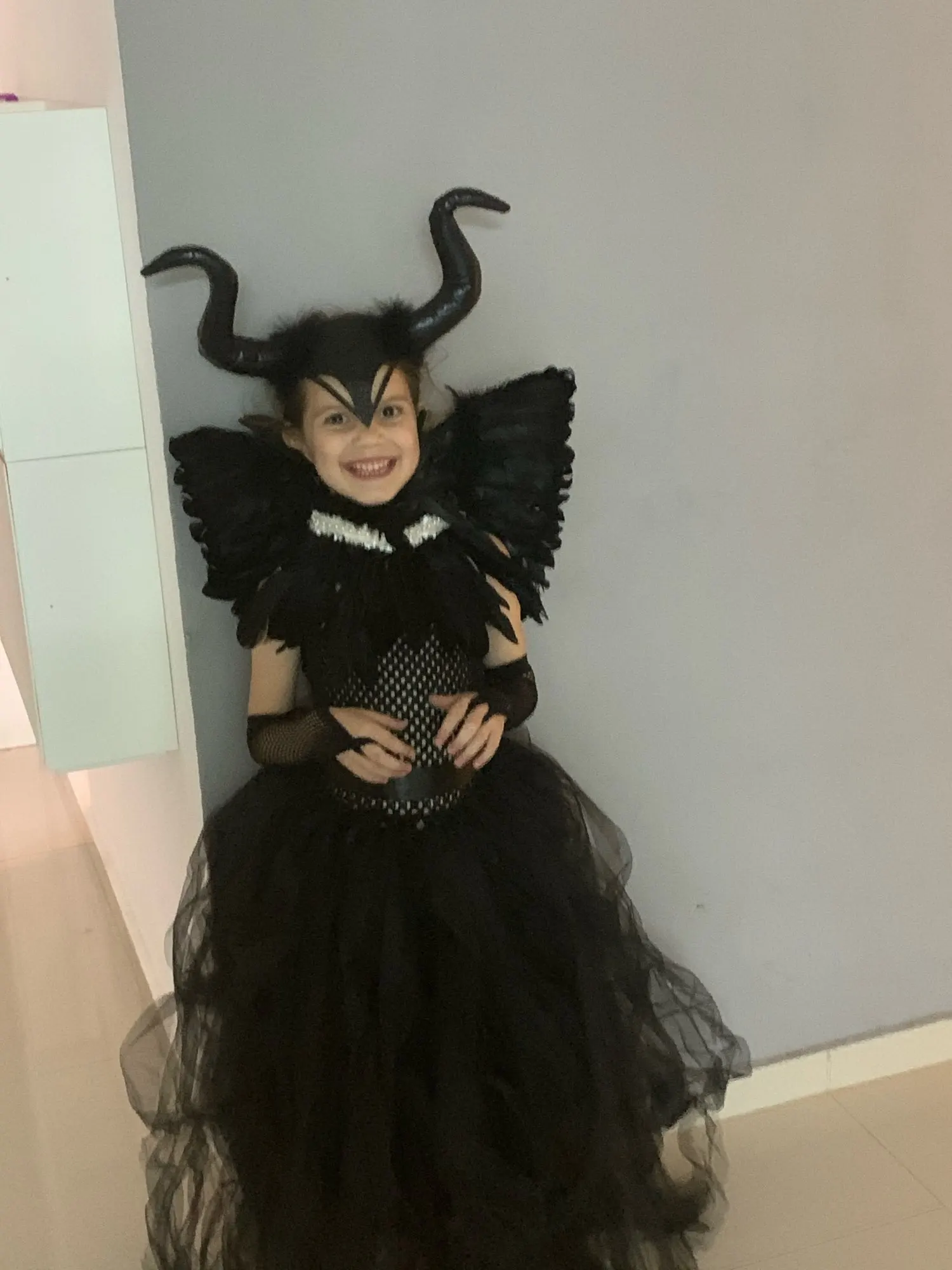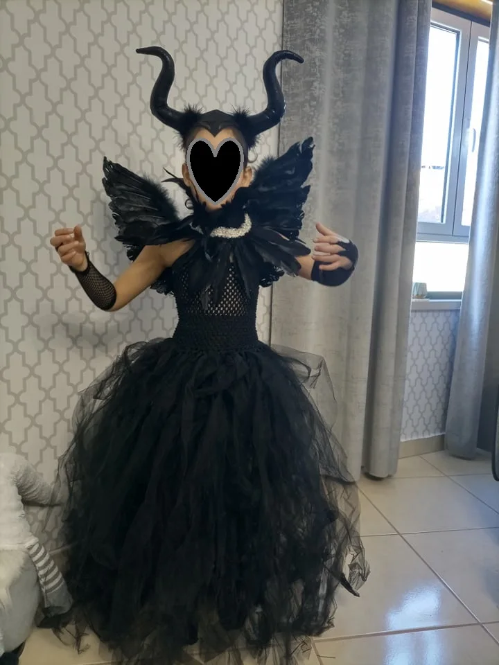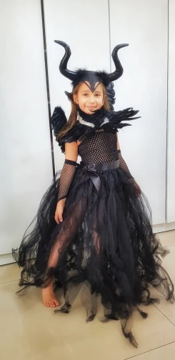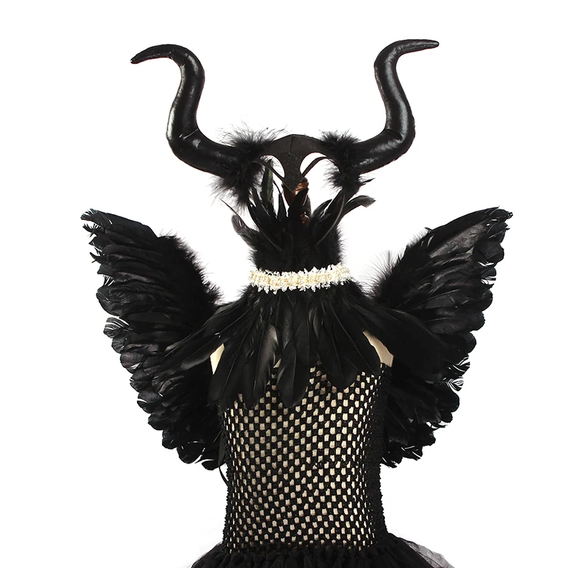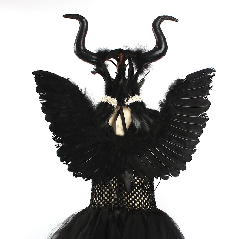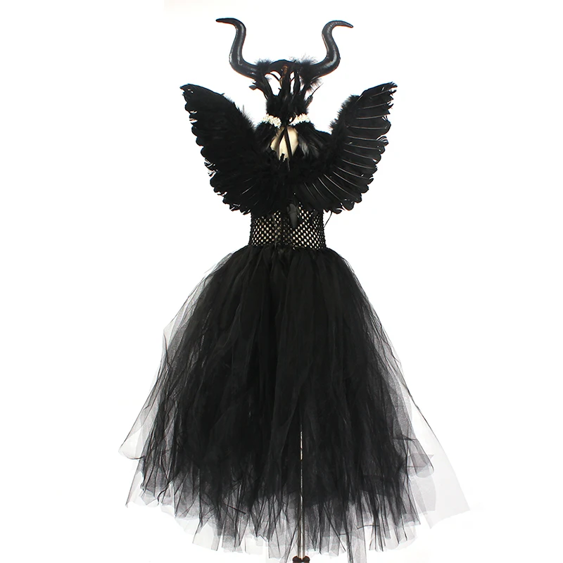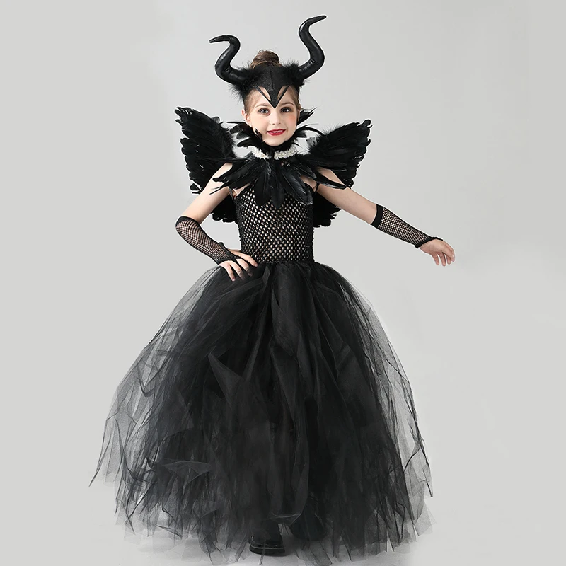 Костюм черного дьявола для девочек, готический костюм темного зла, ведьмы, королевы, пачка, накидка с перьями шаль
