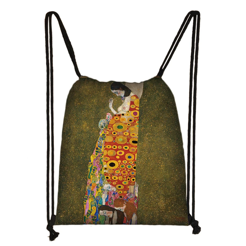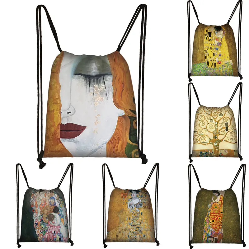 Женская сумка на шнурке с изображением слез/поцелуев Густава Климта, женский модный рюкзак, Пылезащитная дорожная сумка, милая сумка для покупок для девочек