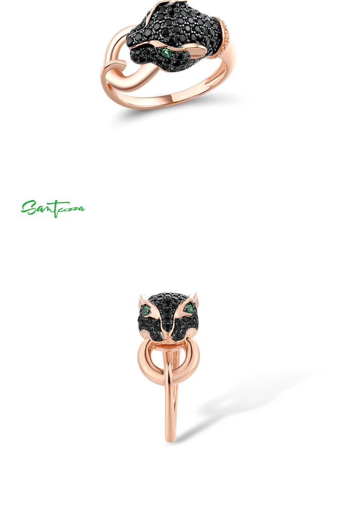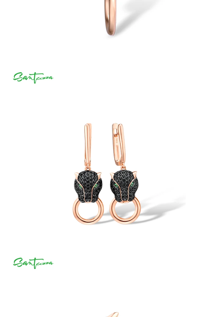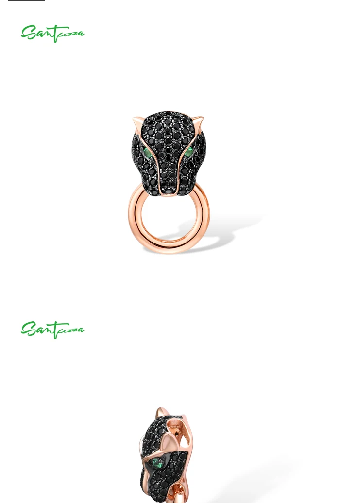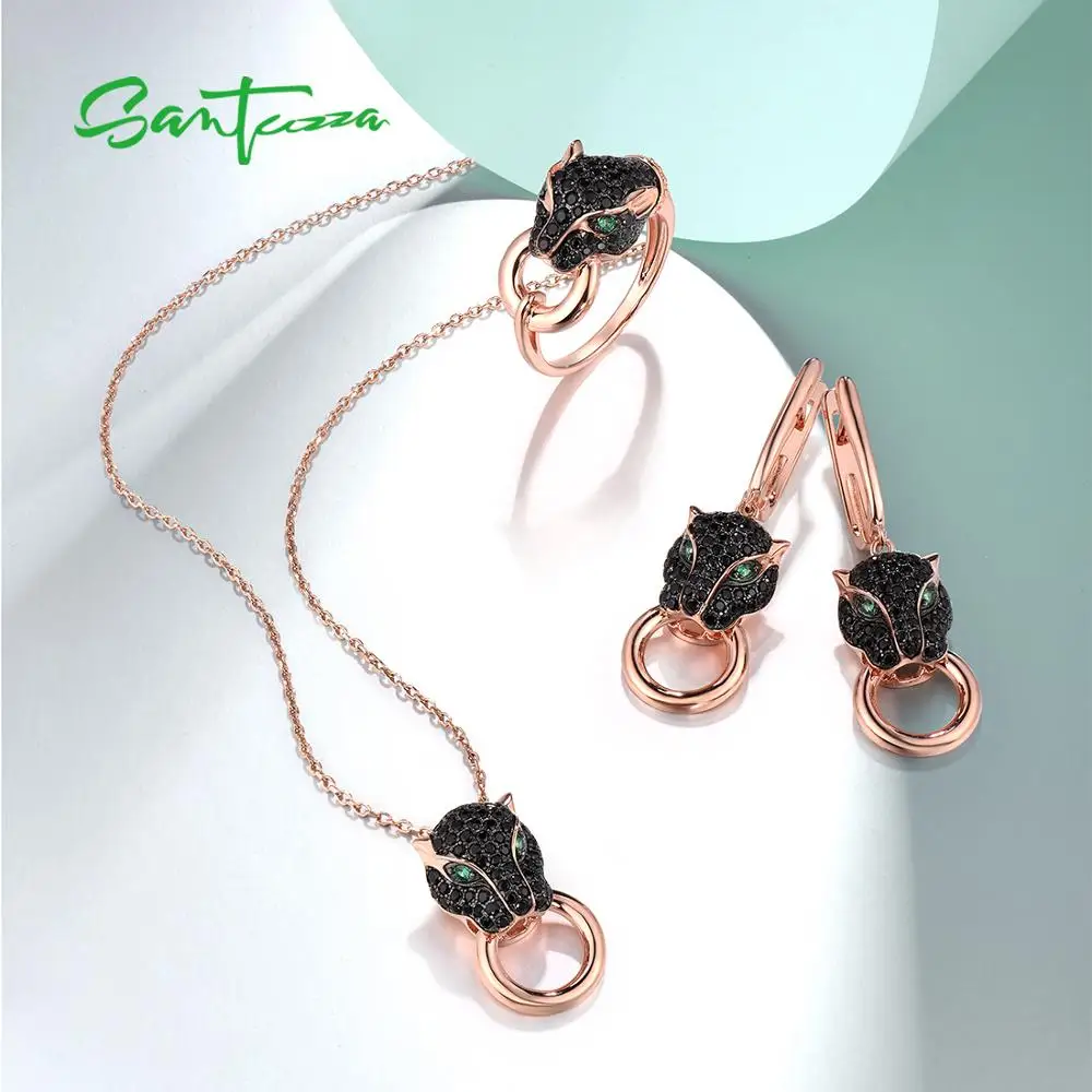 Набор из серебра 925 пробы, сережек и подвески SANTUZZA, из серебра набор украшений для женщин пробы, со шпинелью, с черным леопардом, кольцо с пантерой
