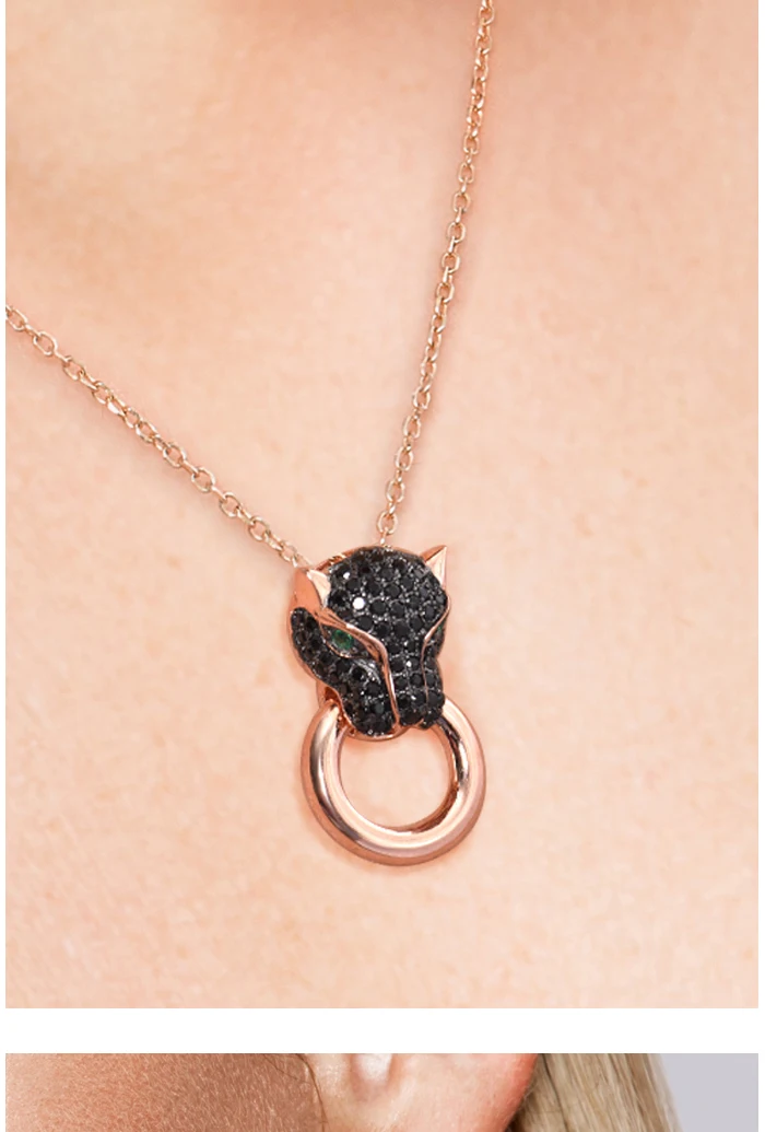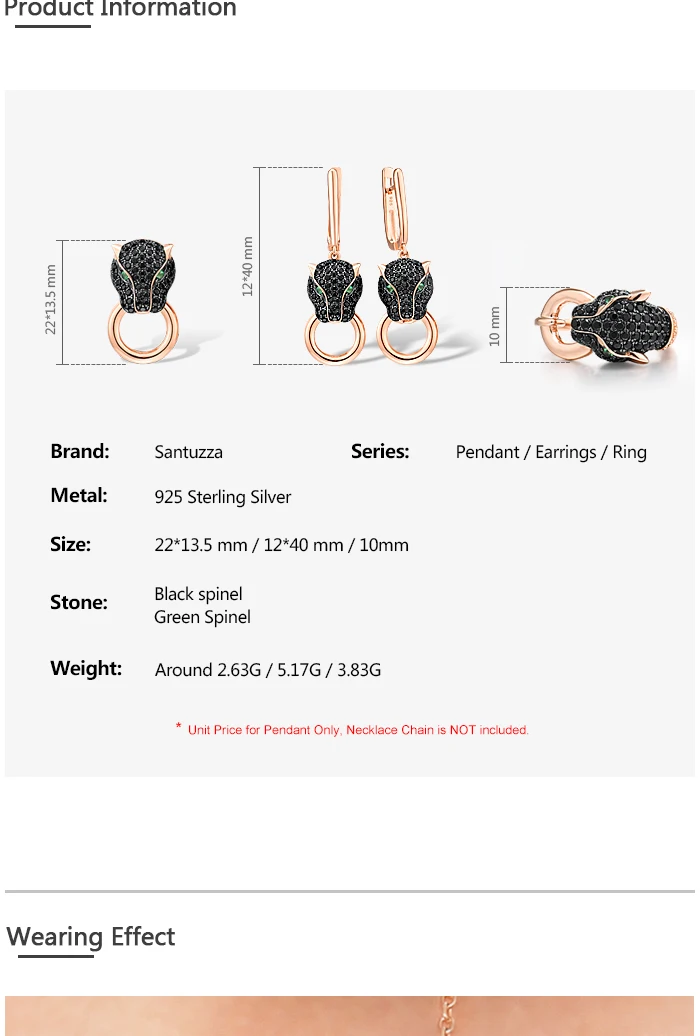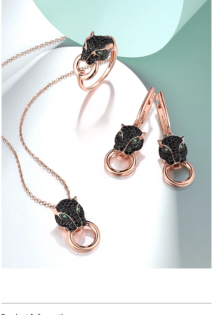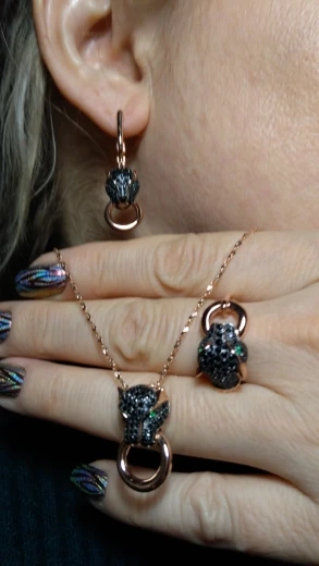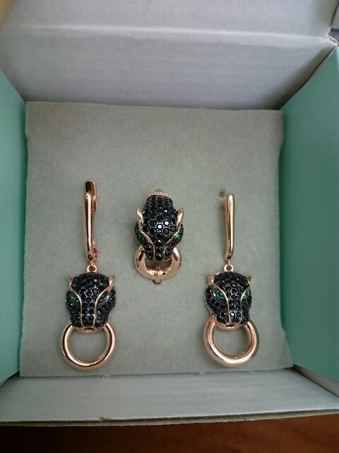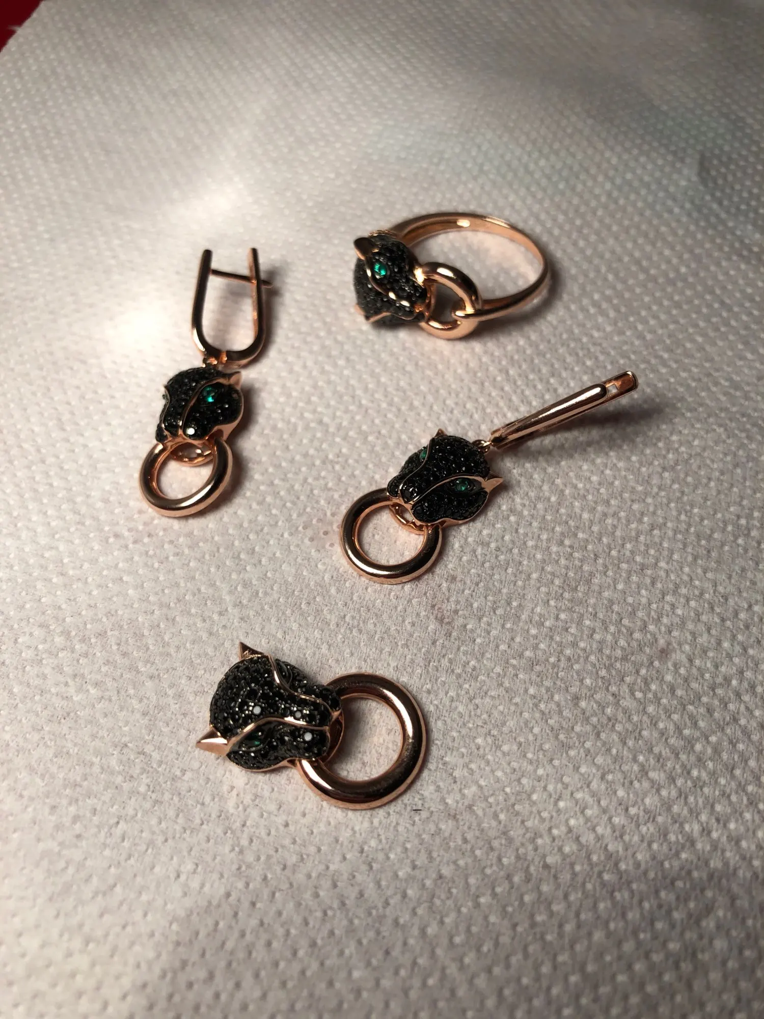 Набор из серебра 925 пробы, сережек и подвески SANTUZZA, из серебра набор украшений для женщин пробы, со шпинелью, с черным леопардом, кольцо с пантерой