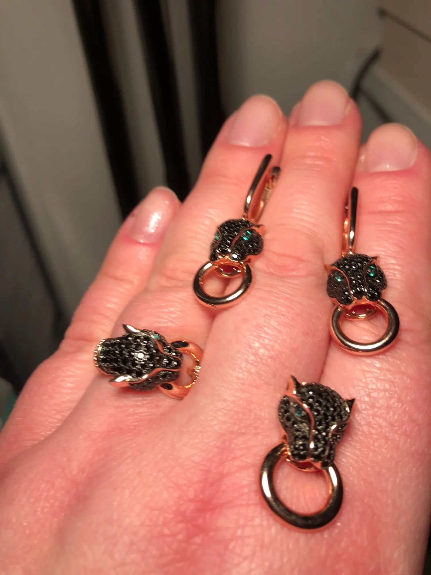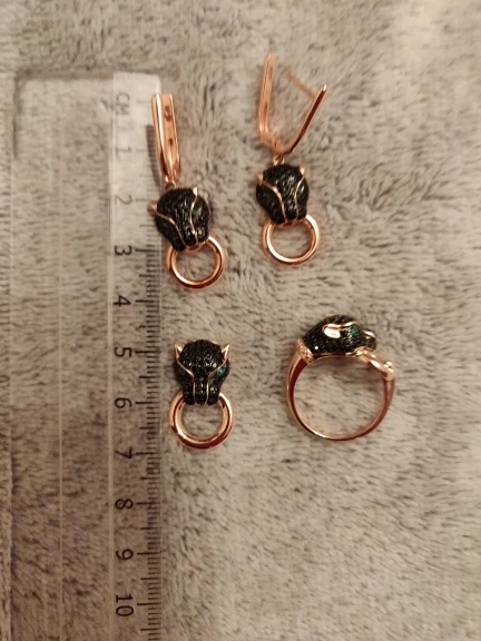 Девочки , заказывайте не раздумывая !!! Комплект просто шикарнейший !!! Смотрится как чёрные бриллианты! Тонкая изящная работа ! Выглядит как красное золото ! Стоит проба 925. Застежки у серёжек хорошие. Доставка быстрая! Я в восторге ! Всем рекомендую ! Спасибо продавцу !!!