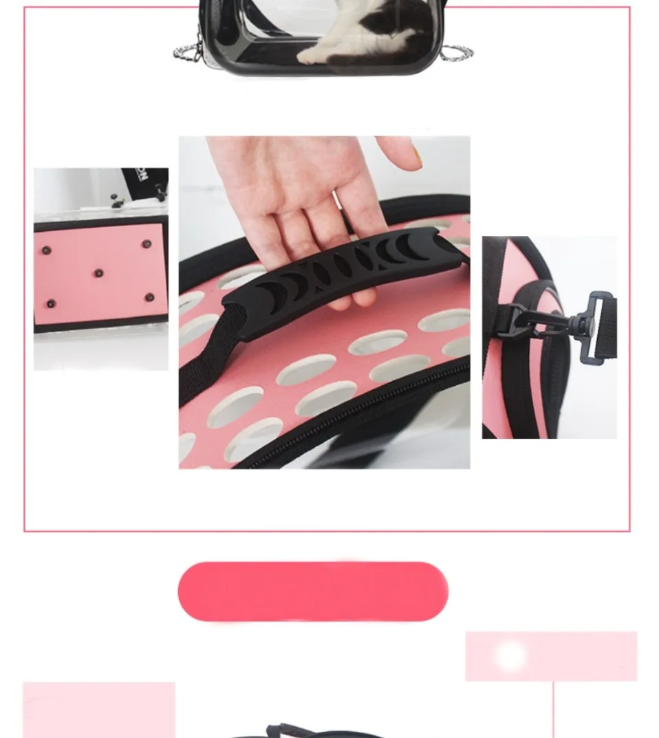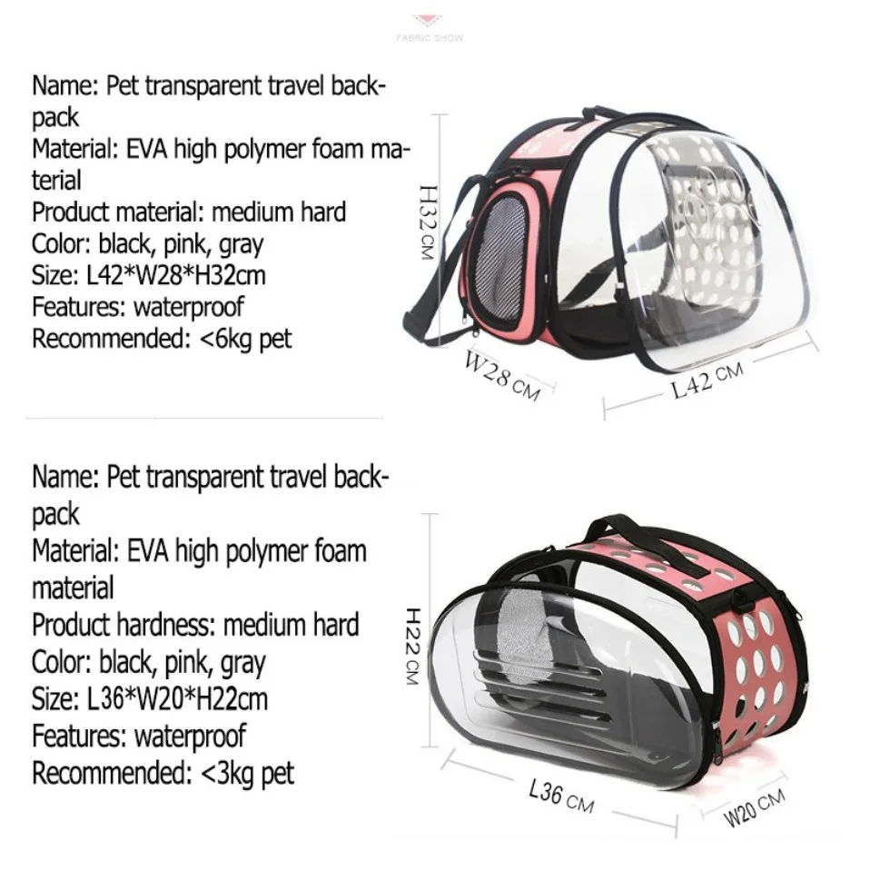 Название: прозрачный дорожный рюкзак для домашних животныхМатериал: высокополимерный Пеноматериал EVAТвердость продукта: средний жесткийЦвет: черный, розовый, серыйРазмер:М: L40xW23xH24cm (подходит для кошек до 4-х никель-металл-кг, собак весом до 3,5 кг)L: L42xW25xH32cm (подходит для кошек до 9 кг, собак весом до 6 кг)
