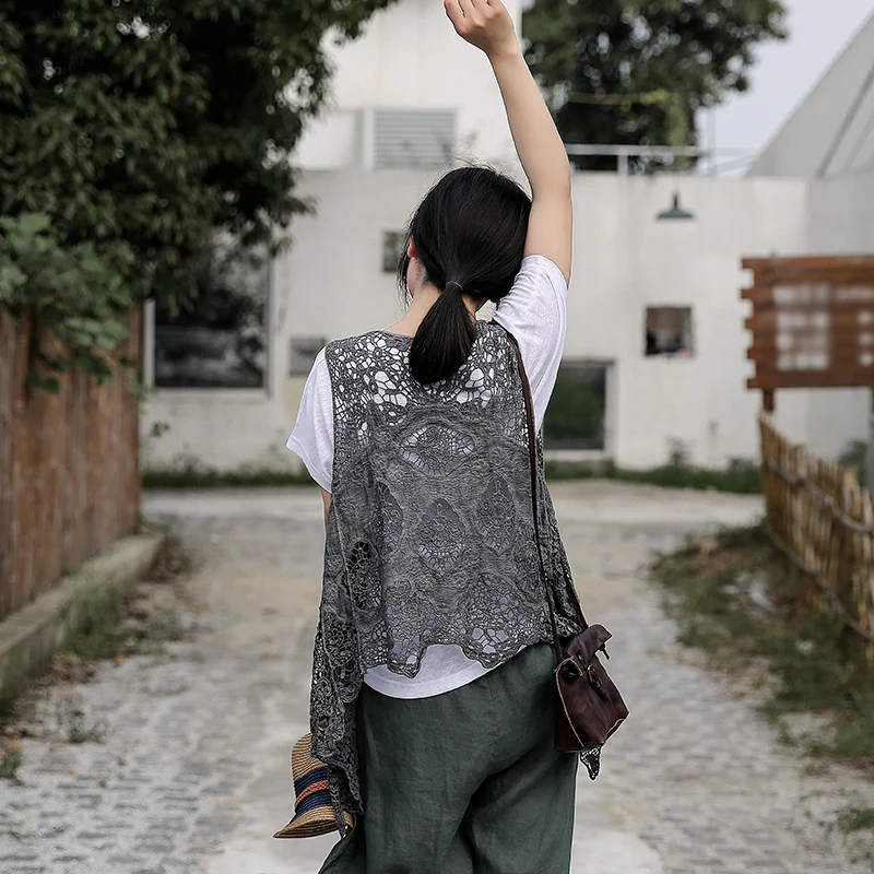 Хиппи Froral Patch дизайнерский жилет Ретро Винтаж крючком Летний Пляжный накидка Топ Асимметричный открытый стежок кимоно кардиган 2022