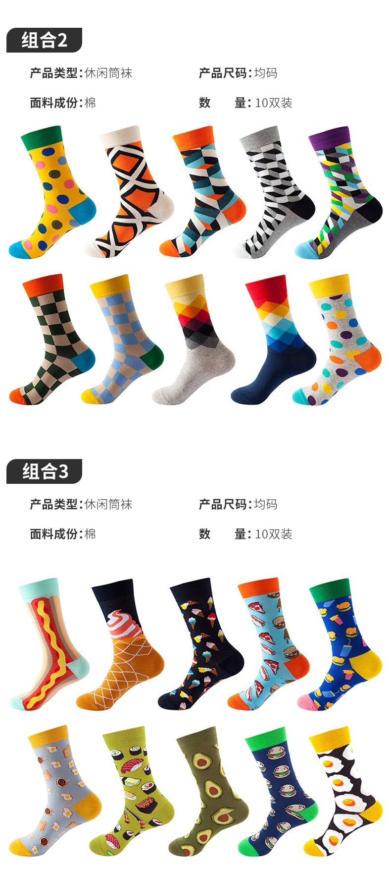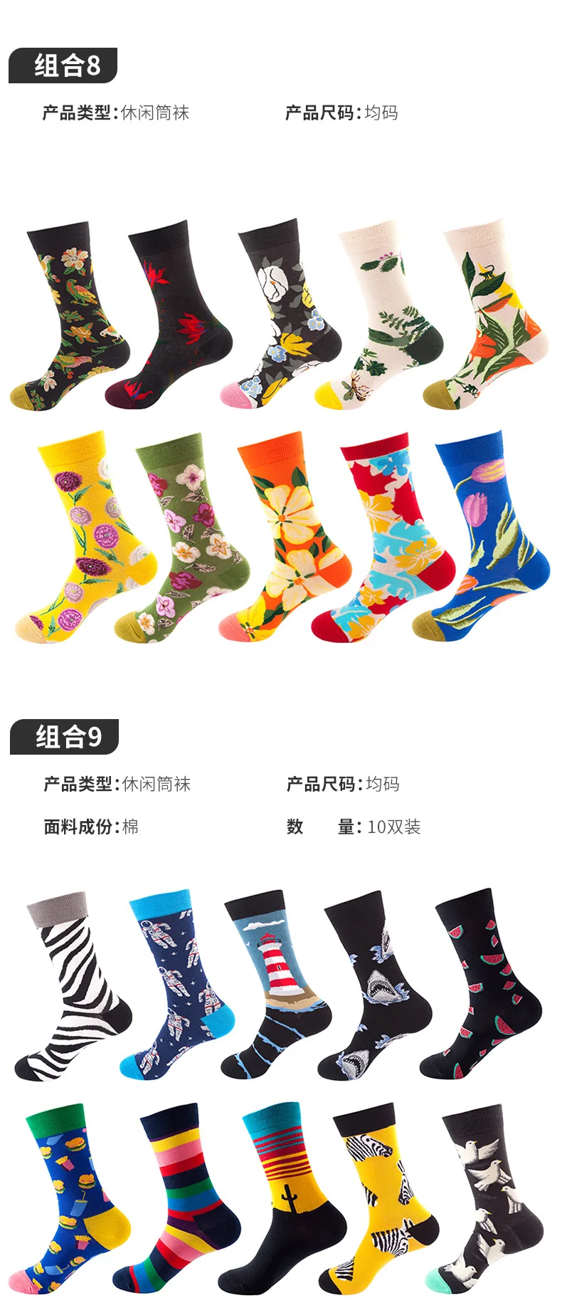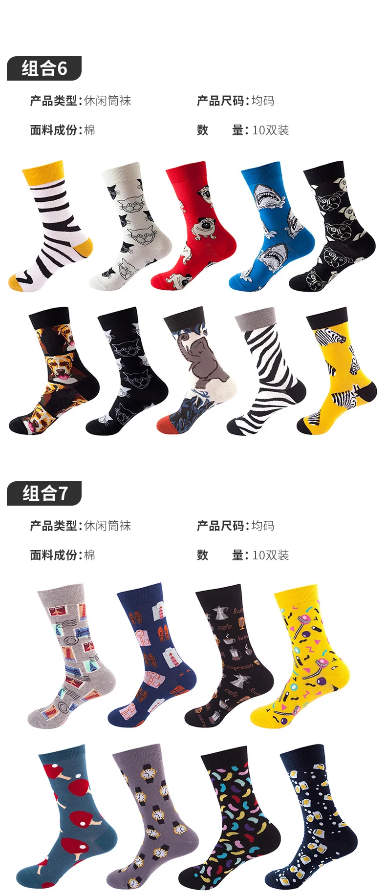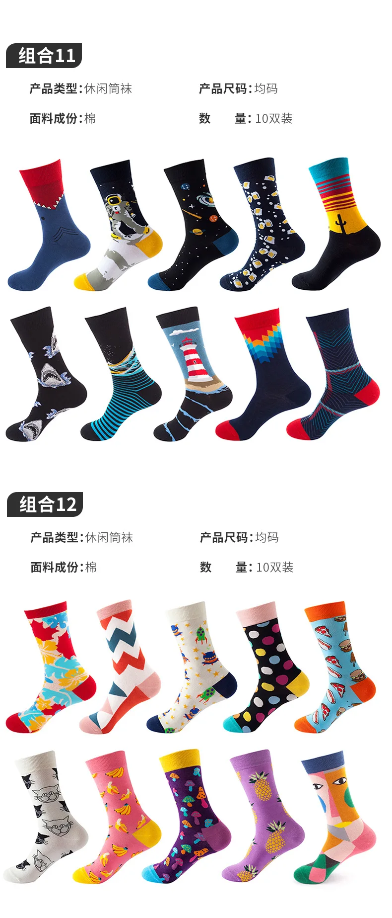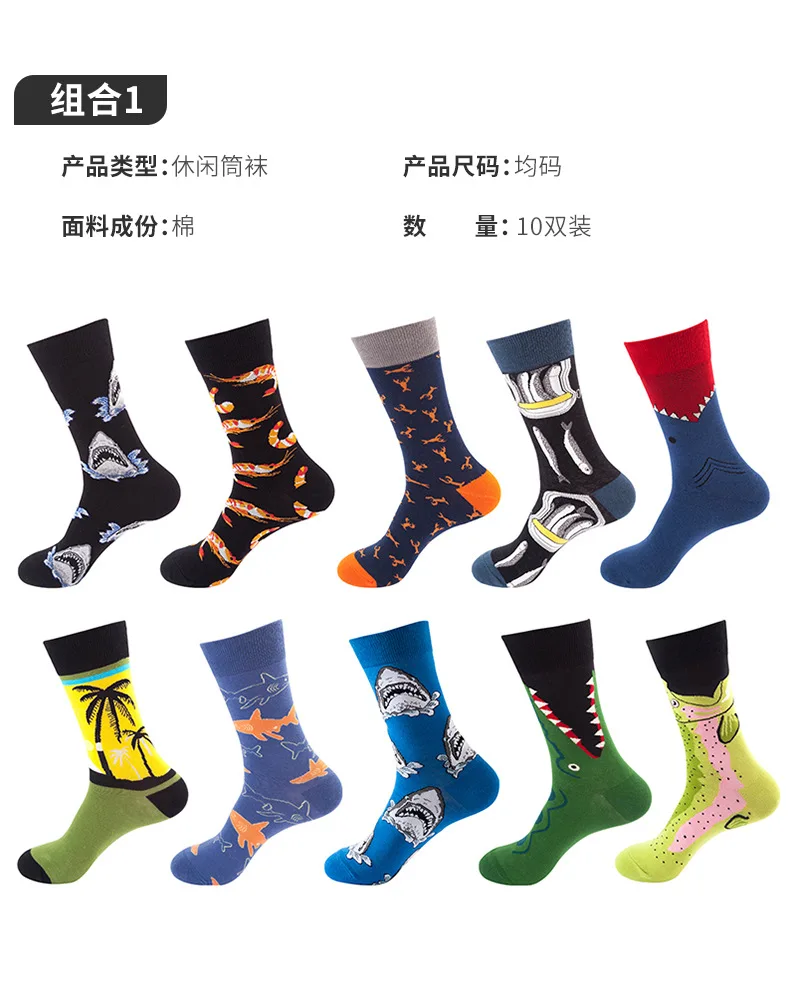 Носки мужские, хлопковые, в стиле хип-хоп, забавные, 10 пар