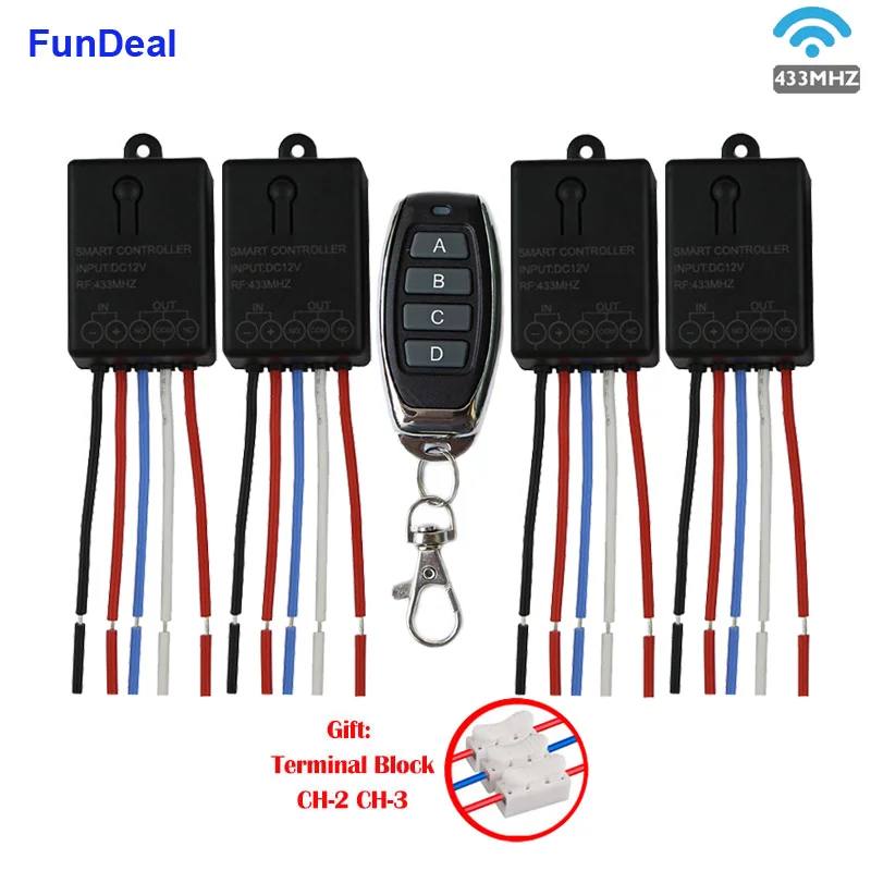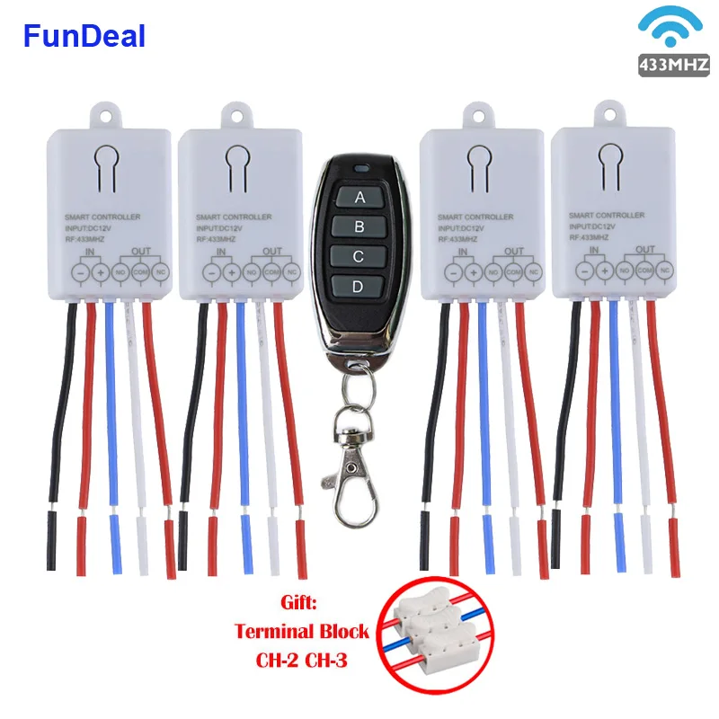 Посылка 1 включает в себя:(Только 1 передатчик) Радиочастотный 433 МГц 4CH пульт дистанционного управления X 1 шт.(Батарея входит в комплект);