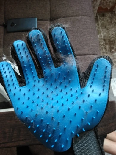 Заказ получили очень быстро - за 10 дней. Перчатка удобная, хорошо вычесывает шерсть, кошке нравится, не убегает! Продавцу спасибо за быструю доставку.