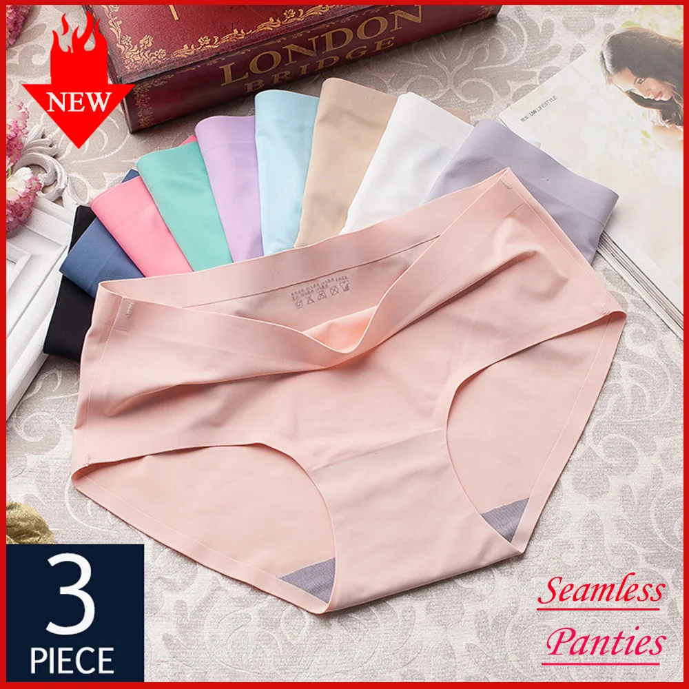 3 шт.комплект, женские бесшовные шелковые трусы со средней посадкой