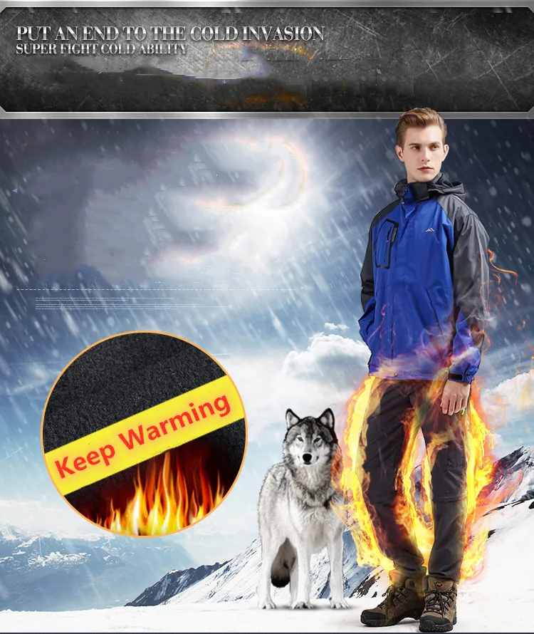 Брендовая мужская зимняя верхняя одежда, брюки, Толстая теплая водонепроницаемая ветровка, брюки, мужские уличные термобрюки из мягкого флиса