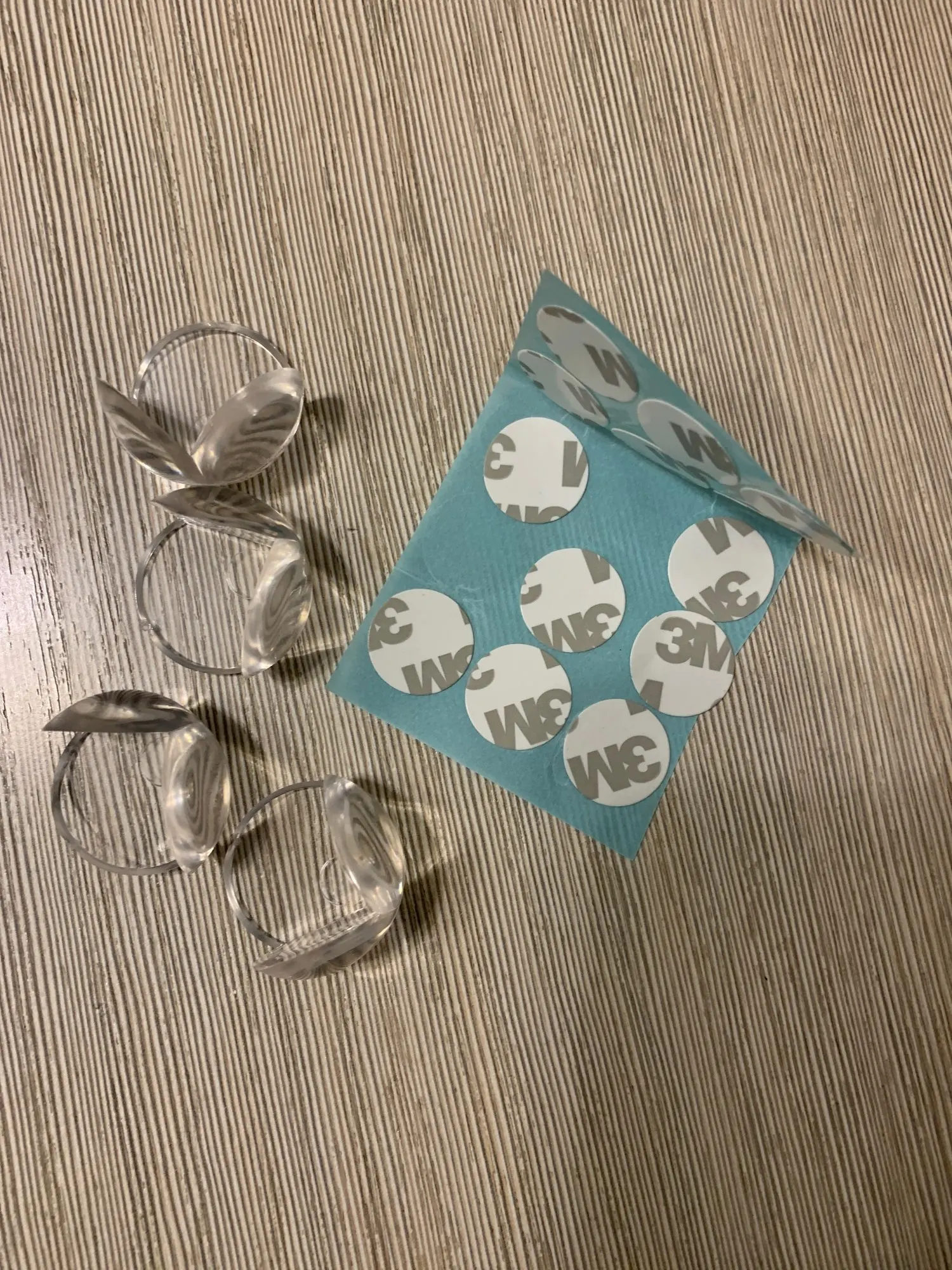 25 дней в Кузбасс объединенной посылкой. Соответствует описанию. В комплект положили кругляши двухстороннего скотча 2 листа по 15 шт. Если понадобиться переклеить на другое место - пригодятся. Без него силиконовые уголки не держаться вообще. Скотч, кстати, видно - это минус с эстетической стороны. Да и сам силикон не высокого качества: мутный с вкраплениями. Для таких целей сойдет.