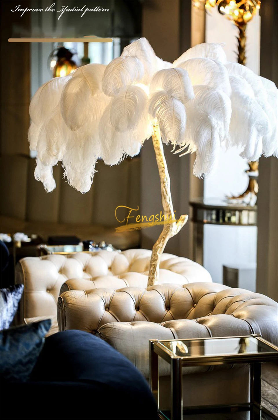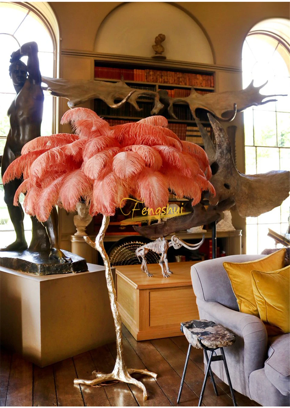 Напольная Лампа в скандинавском стиле с страусиными перьями, современный роскошный светильник в виде ветки, осветительный прибор для гостиной