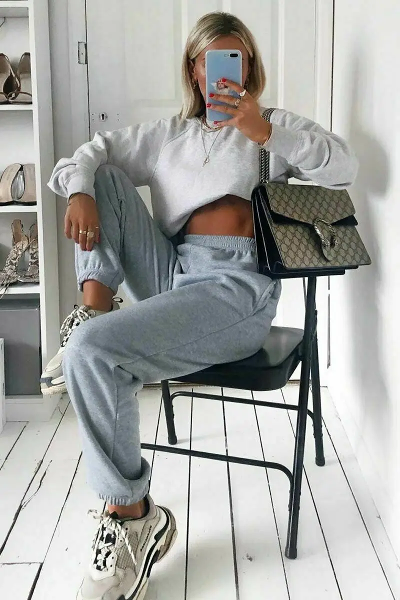 Треники для женщин женские мешковатые штаны серого цвета Демисезонн...