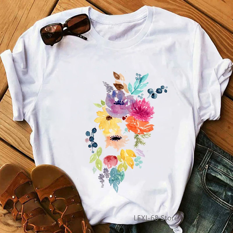 Женские летние топы, футболка с акварельным принтом в стиле Харадзю...