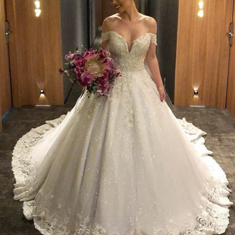 2022 бальное платье, свадебное платье, женское платье с открытыми плечами, блестящее Тюлевое свадебное платье принцессы, Vestido De Noiva