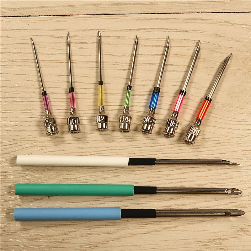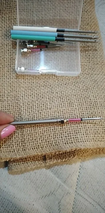 Классные иголки, острые, работать удобно. Было опасение, что из-за простой ручки держать и работать будет неудобно или даже больно, но нет, всё хорошо. Нитковдеватель в комплекте, всё класс - рекомендую