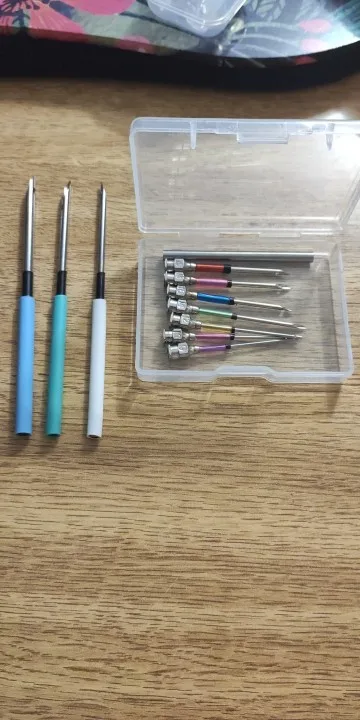 самый дешёвый набор с отменным качеством, иглы качественные, я попыталась одну сломать, у меня не вышло. они намнооого более качественно сделаны чем регулируемые. я в восторге. можно найти деревянную палочку, чтоб было удобнее работать. доставка за 2 недели в Польшу.