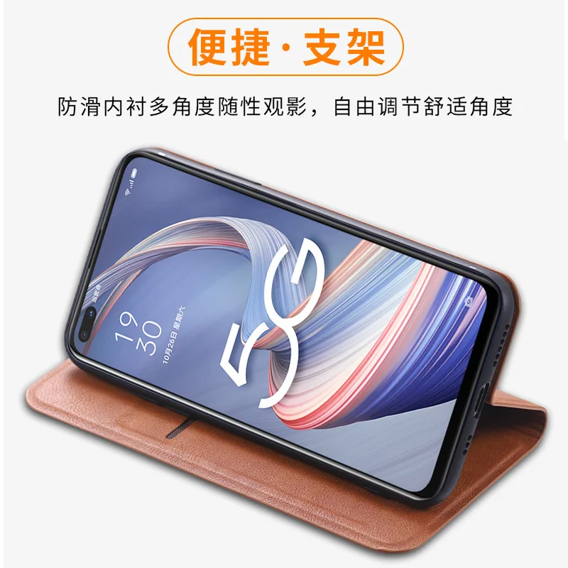 Роскошный кожаный чехол-бумажник Reno Z с подставкой и откидной кры...