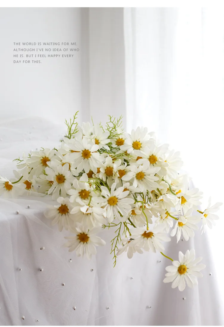 10 Букет искусственных цветов маргаритки, 5 головок, аксессуары для украшения дома, свадебные реквизиты для фото сделай сам, обеденный стол на Рождество