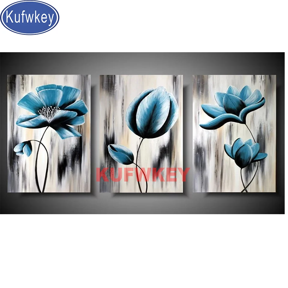 3 Панели синий цветок Алмазная картина полный квадрат 5d картина круглая мозаика алмаз искусство 3d вышивка крестиком современное искусство наклейки на стену,