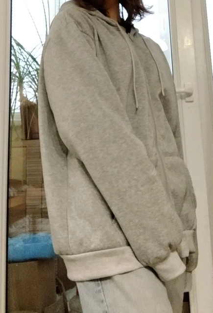 Толстовка хорошего качества, мягкая, приятного цвета. тъТрикотаж не тонкий, не тянется. Оверсайз у меня не получился, но толстовка села хорошо по фигуре. Не очень длинная. Длина рукава в норме по росту у меня рост 160 см). Замок металлический, работает. В целом впечатление о товаре хорошее. Продавец отправил заказ сразу, дошел за 20 примерно дней.