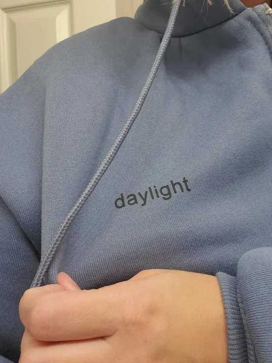 Красивая, теплая и мягкая толстовка. Очень удобный. Цвет красивый! С одной стороны напечатано «Дневной свет» и «Конечно» с другой, но для кого это важно. Молния металлическая и не такая простая, но работает. Я очень доволен своим заказом.