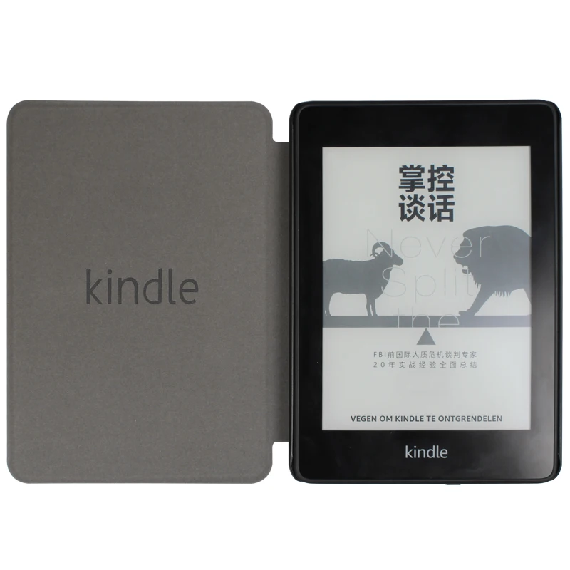 Genial, con logo de Kindle. Se enciende cuando abres la tapa.