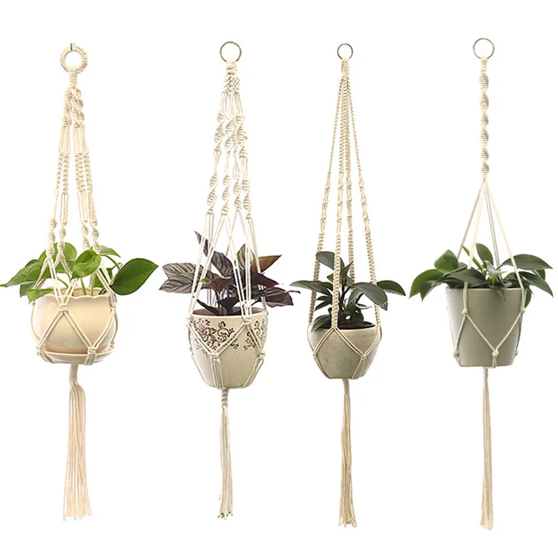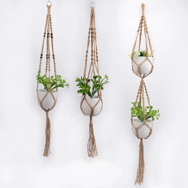 Цветочный горшок ручной работы, винтажная подвесная корзина, вешалки для растений, хлопковый цветочный горшок, подвесной горшок, веревка, декор для сада и балкона