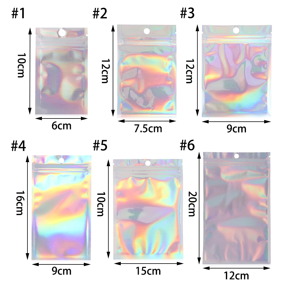 20 шт радужные мешки Жара-запечатывание косметический Пластик лазер...