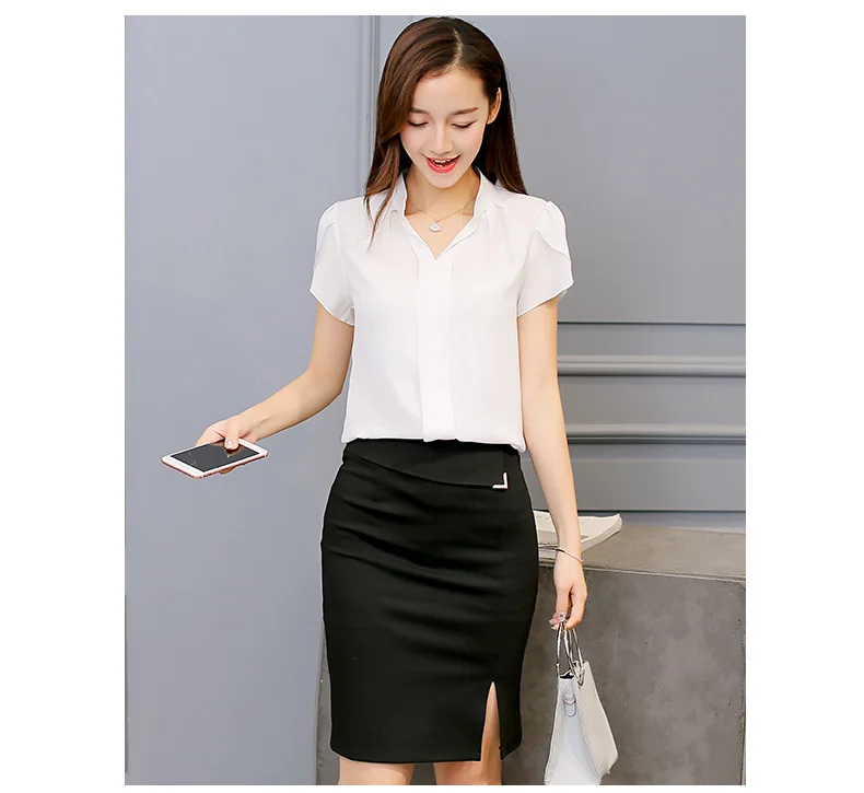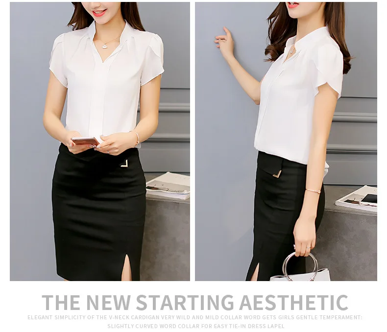 Женская Офисная шифоновая белая рубашка, элегантный топ с коротким ...