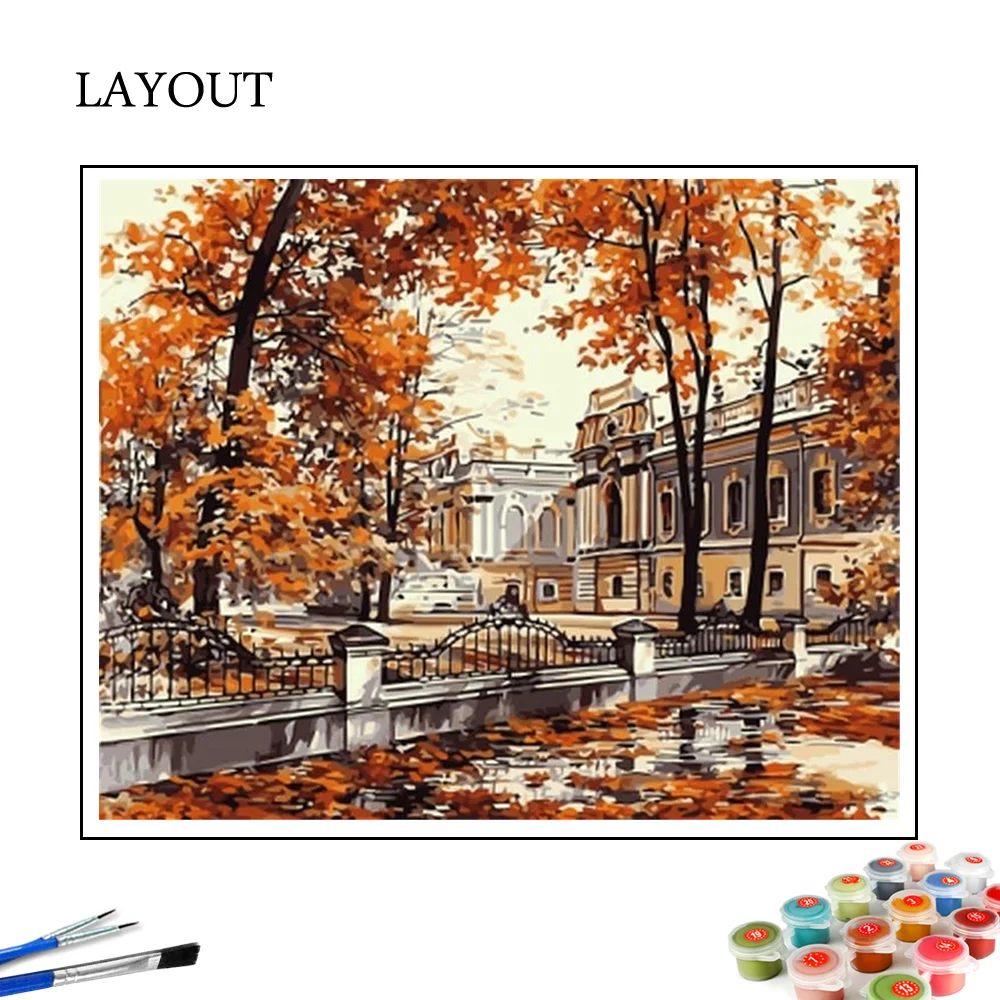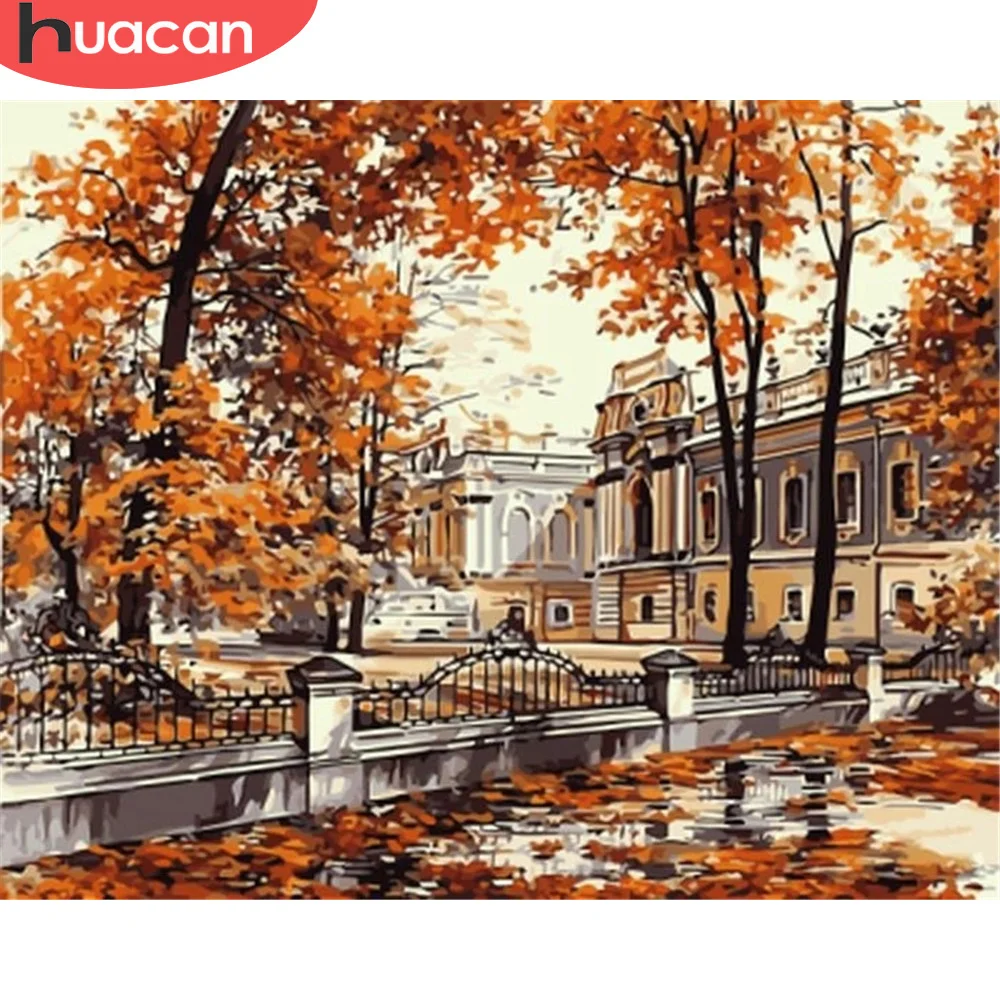 HUACAN DIY картины по номеру осенние наборы домашний декор живопись по номерам дерево Пейзаж рисунок на холсте Ручная роспись искусство подарок
