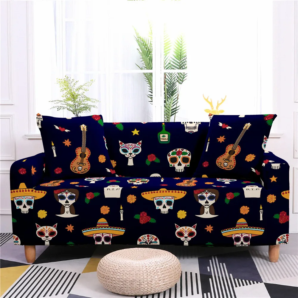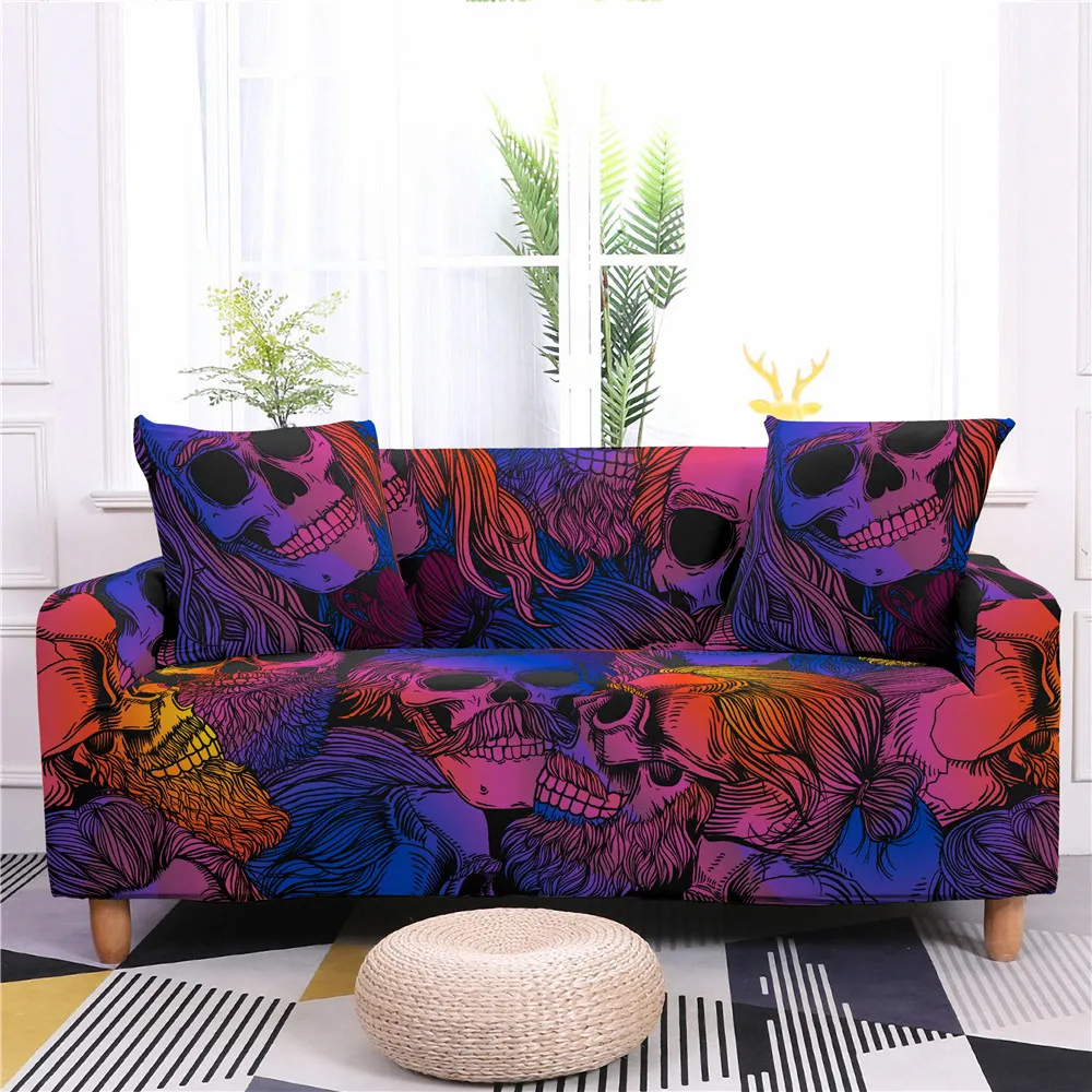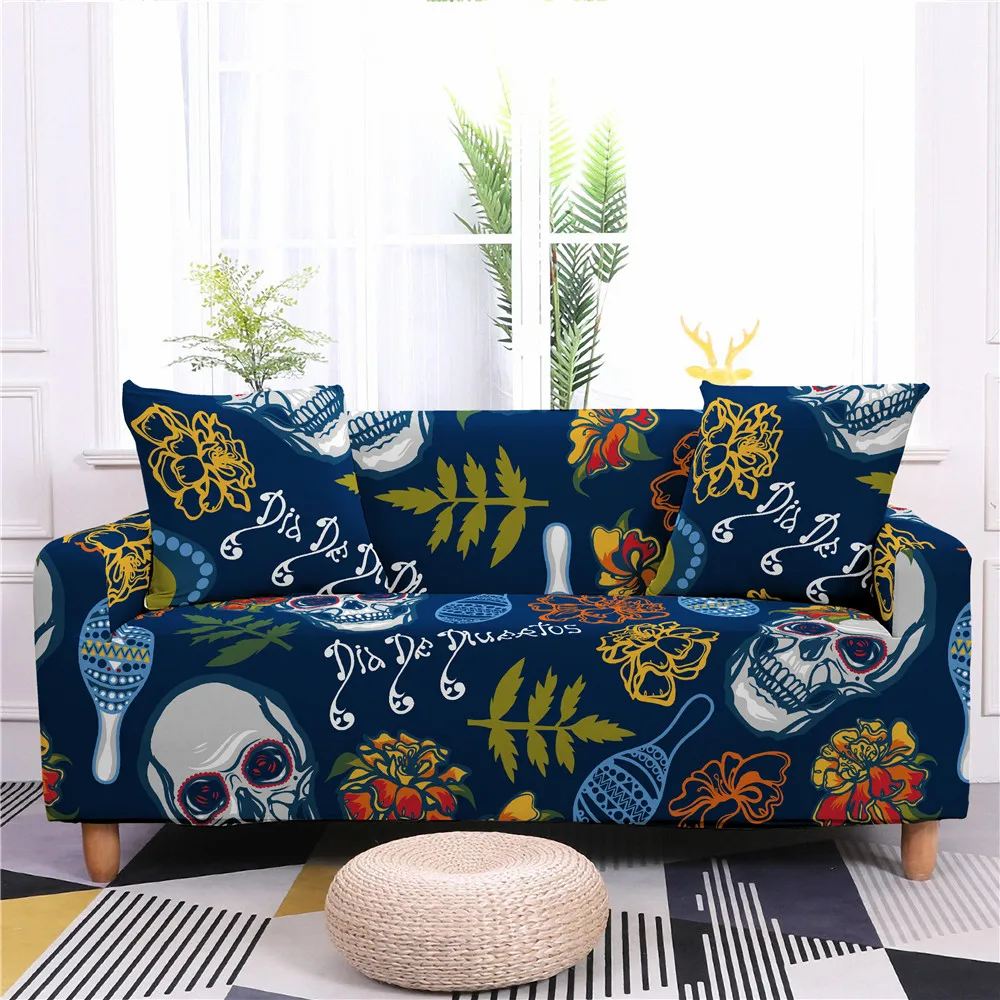 Чехлы для диванов эластичные с изображением черепа, цветов, защитно...