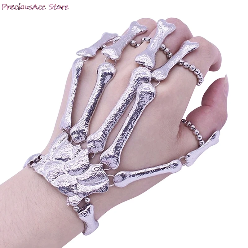 Ночной клуб готический панк череп браслеты на пальцы для женщин скелет кости браслеты для рук 2020 подарок на Рождество, Хэллоуин