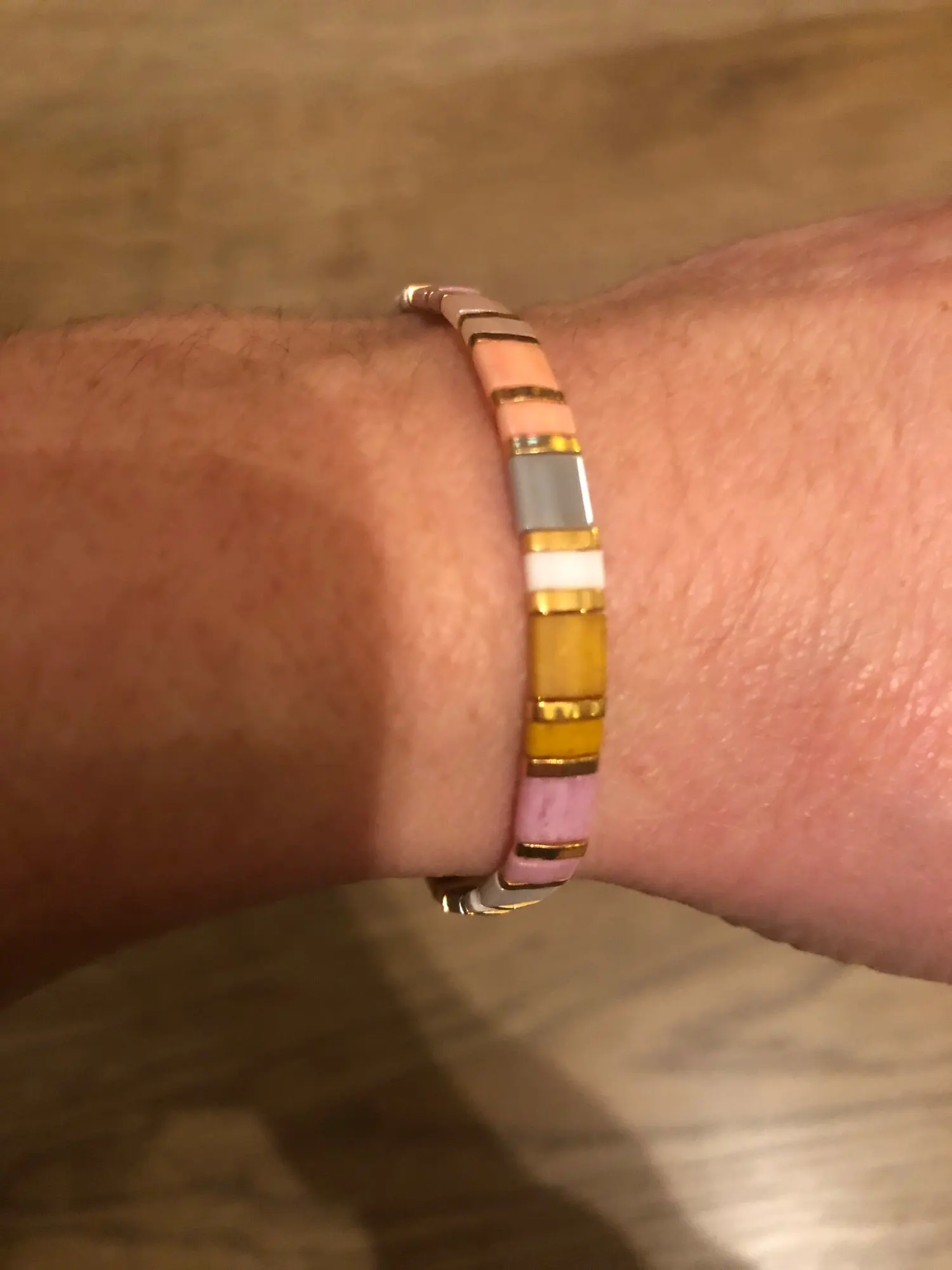 Très joli bracelet, couleur vive, très sympa, livraison rapide que du bonheur.