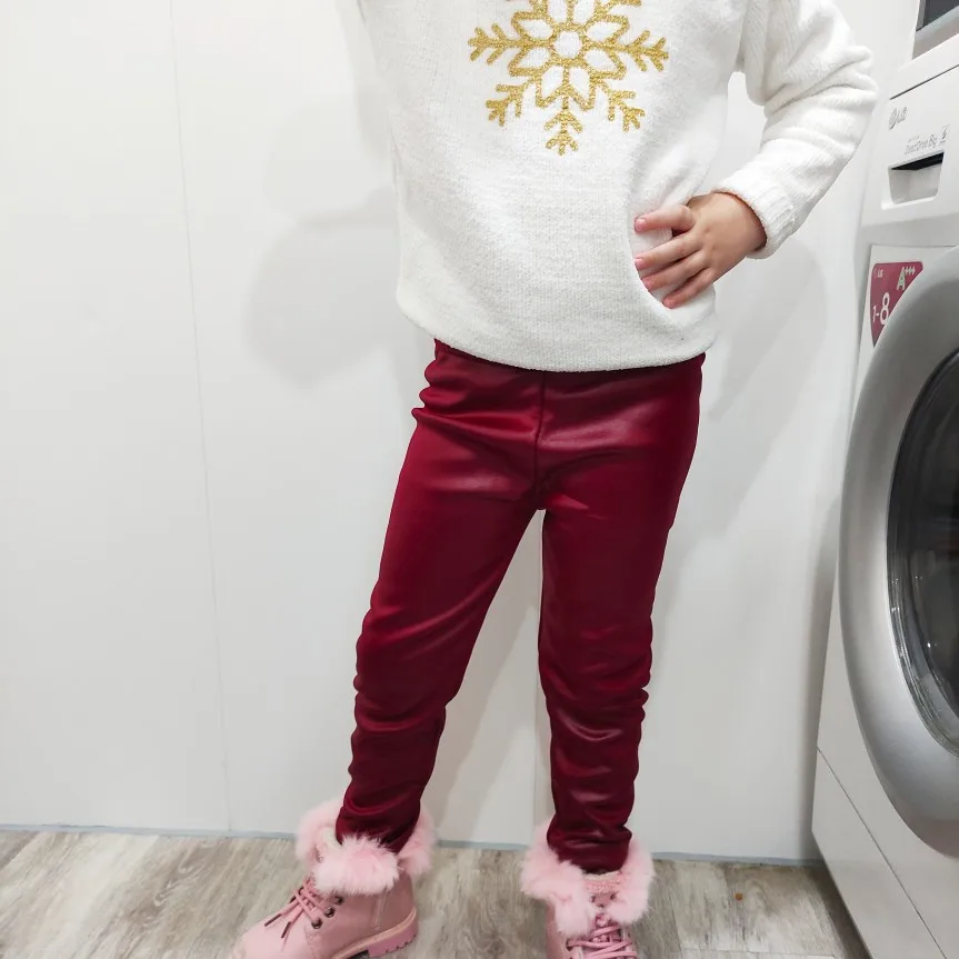 Леггинсы кожаные для девочек, Осень-зима, детские брюки-карандаш