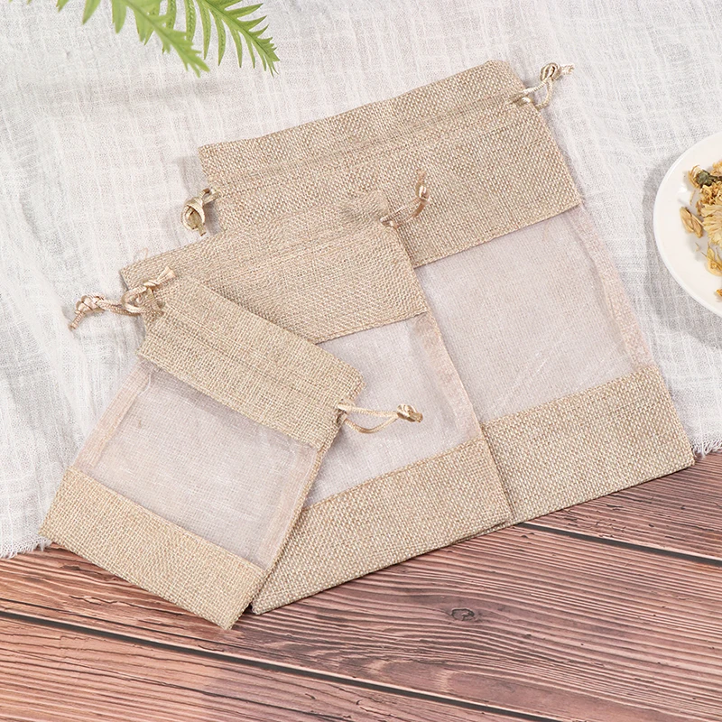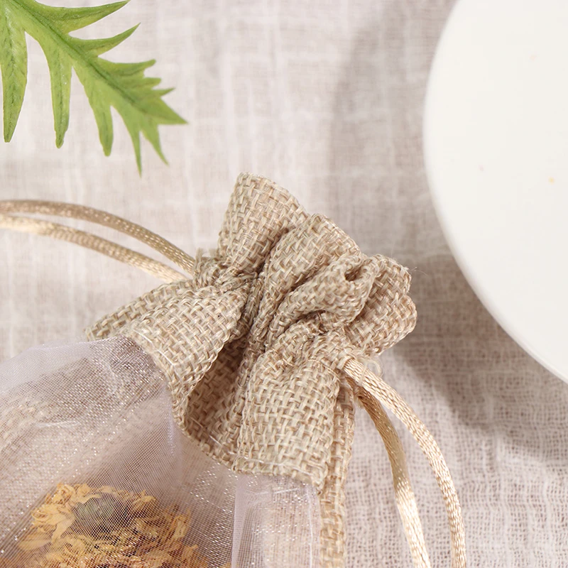 Джутовые мешки из органзы, 5 шт.лот, мешочек на шнурке для свадебве...