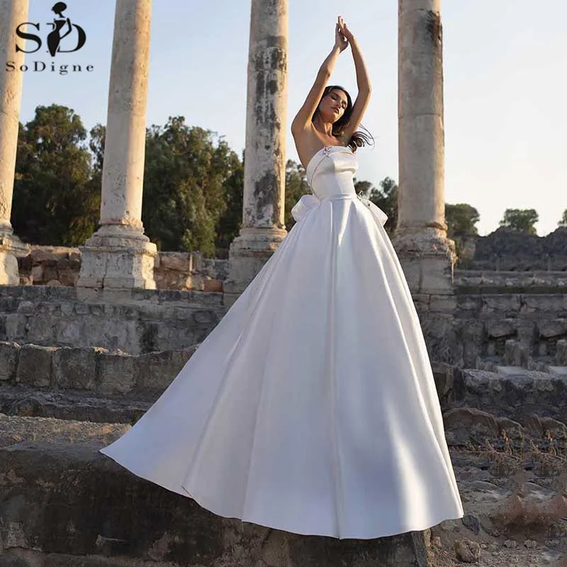 Атласное Бальное Платье soworthy, простое кружевное свадебное плать...