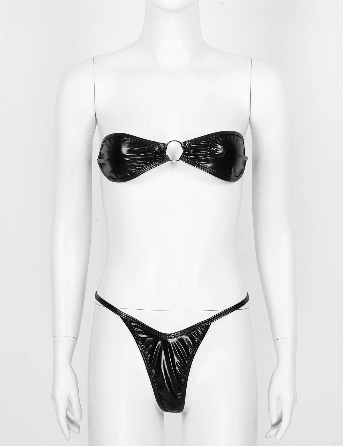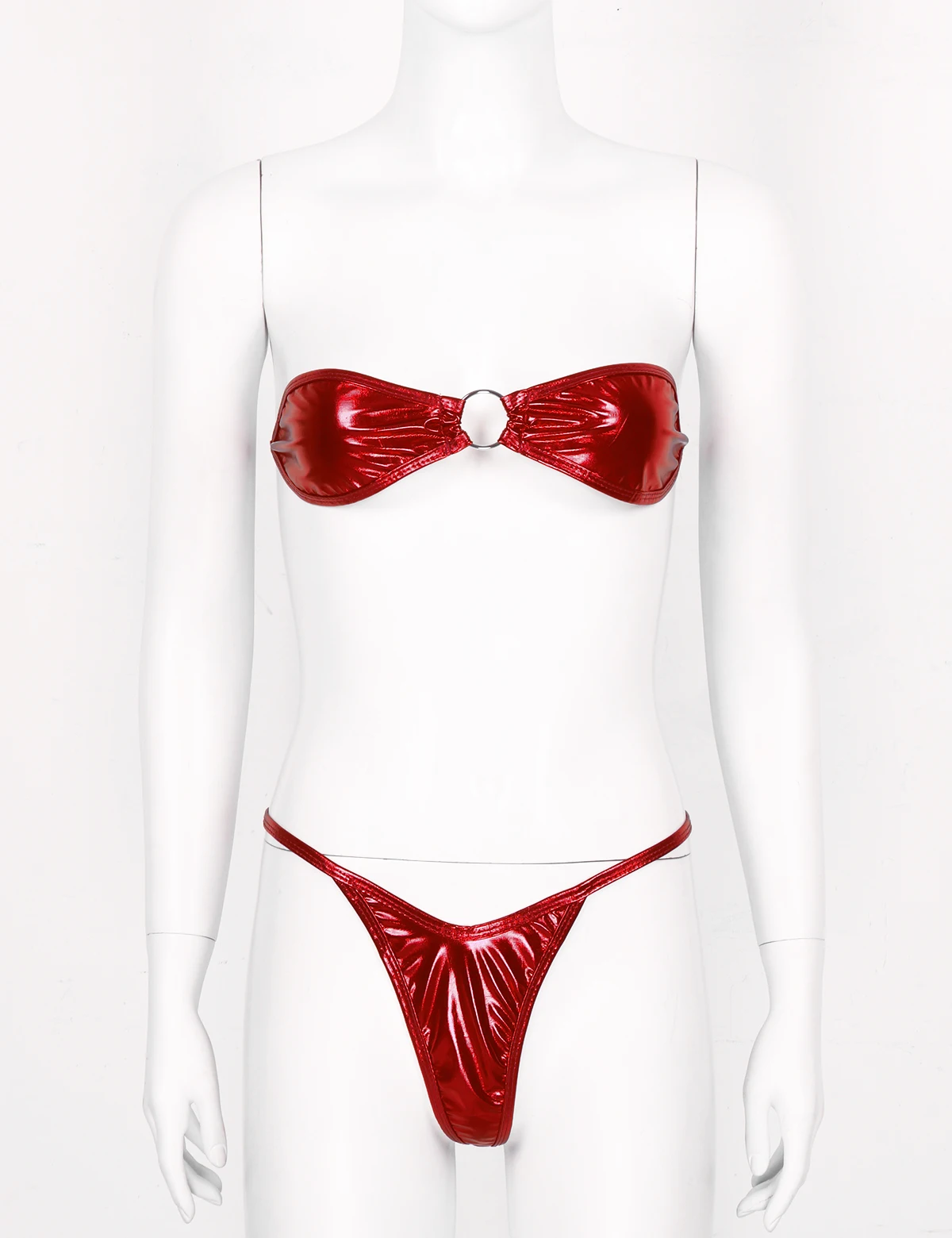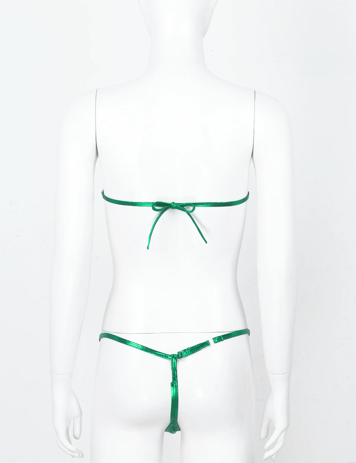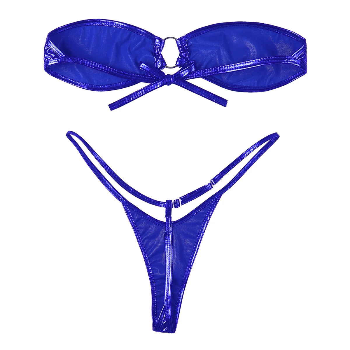 Микро Мини Бикини женское блестящее бикини металлик Нижнее белье Бюстгальтер Топ с стринги комплект бикини купальник купальники купальный костюм