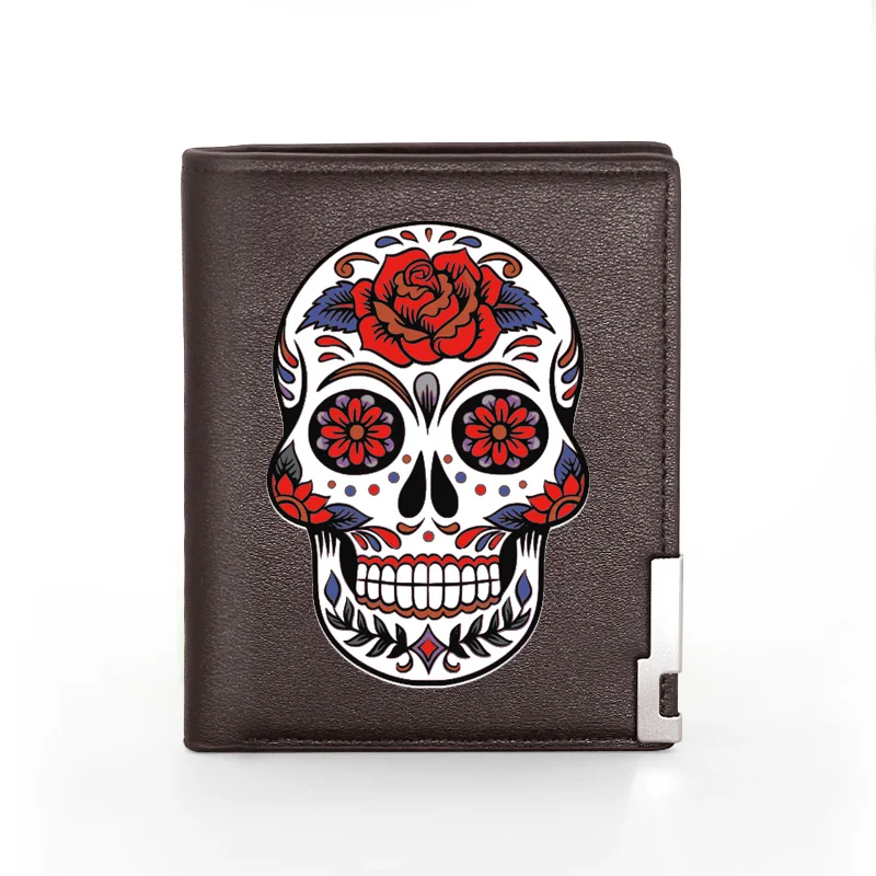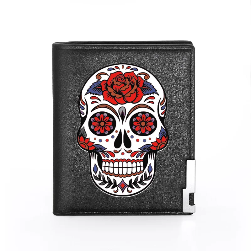 Классический Модный кошелек из искусственной кожи с цветочным принтом и черепом, мужской короткий кошелек в стиле стимпанк с отделением для кредитных карт