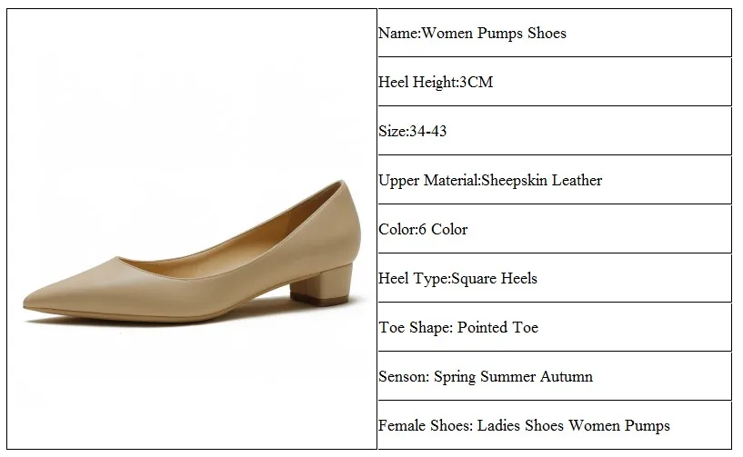 Размер: 34-43Материал верха: овечья кожаЦвет: 6 цветовТип каблука: Квадратный высокий каблукФорма Носка:Острый носокSenson:Весна-лето-осеньЖенская обувь:Женская обувьSЖенские туфли-лодочки