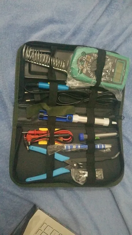 Все доставлены в соответствии с описанием. Также был отмечен срок доставки. Паяльник и инструменты хорошо используются. Наконечники для пайки быстро заменяются, и устройство можно использовать снова. В самом деле, мультиметр работает, но почему я не купил этот комплект.
