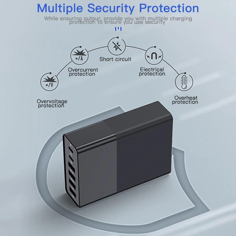 Зарядное устройство PD QC3.0 с 6 USB-портами, 75 Вт