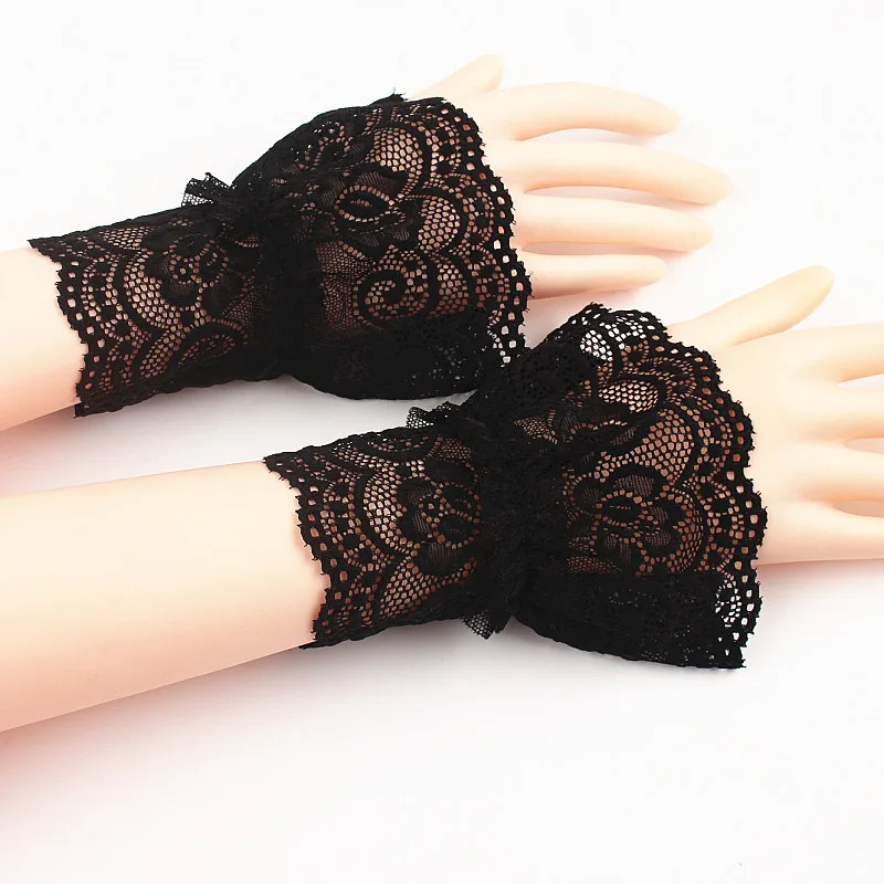 Накладные расклешенные рукава для женщин и девочек, цветочные кружева, шт.пара накладные манжеты, свитер, грелки для запястья, кружевные манжеты, украшение, 2 плиссированные с рюшами