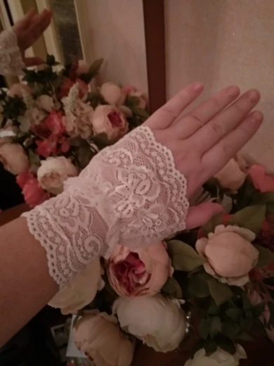 Гипюр, конечно, так себе, дешевенький. На запястье 14см манжеты великоваты. Но, в целом, идея хорошая.