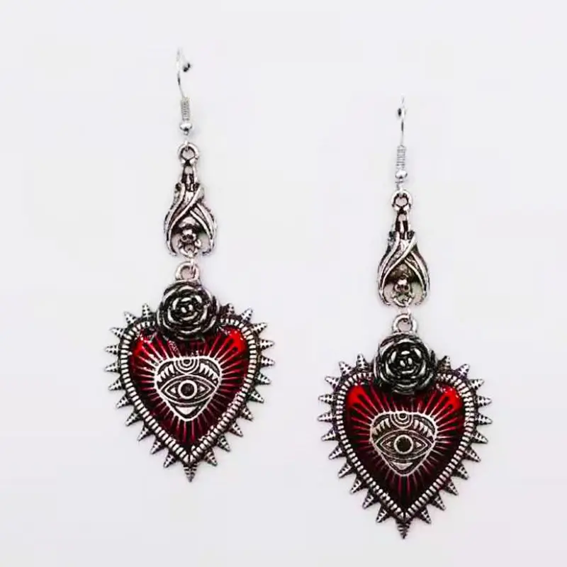 Винтажные серьги Лолита Готика от сглаза красное сердце для женщин ...