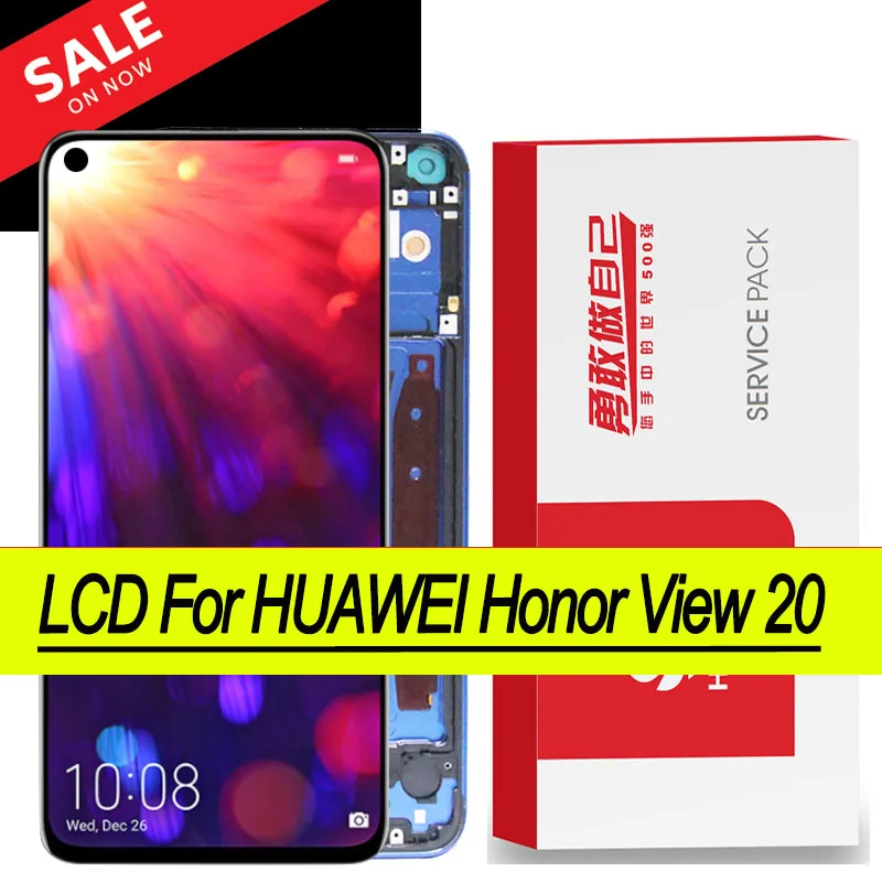 ЖК-дисплей с рамкой для Huawei Honor View 20 Honor V20, оригинальный, с дигитайзером сенсорного экрана, запасные части для ЖК-дисплея Nova 4, 100%