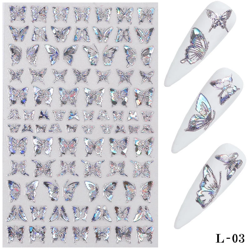 Наклейки для дизайна ногтей, голографические, бронзовые, тонкие, бабочки, полые наклейки, лазерные, золотые, серебряные, красивые, для самостоятельного украшения