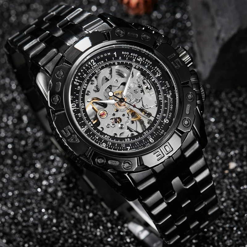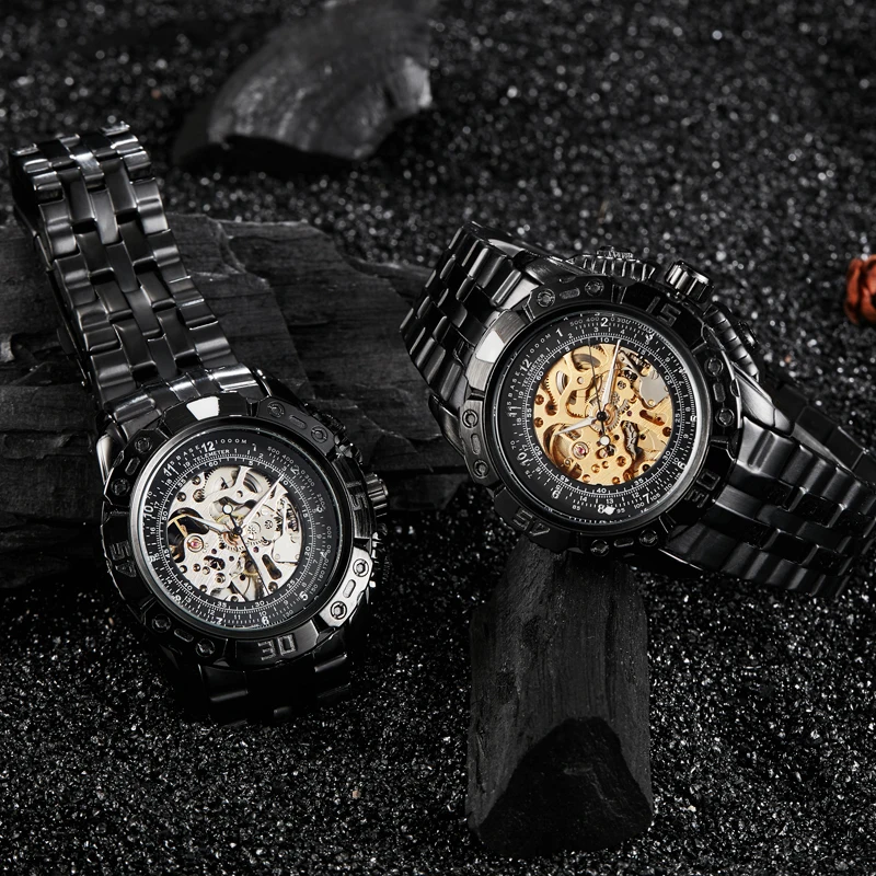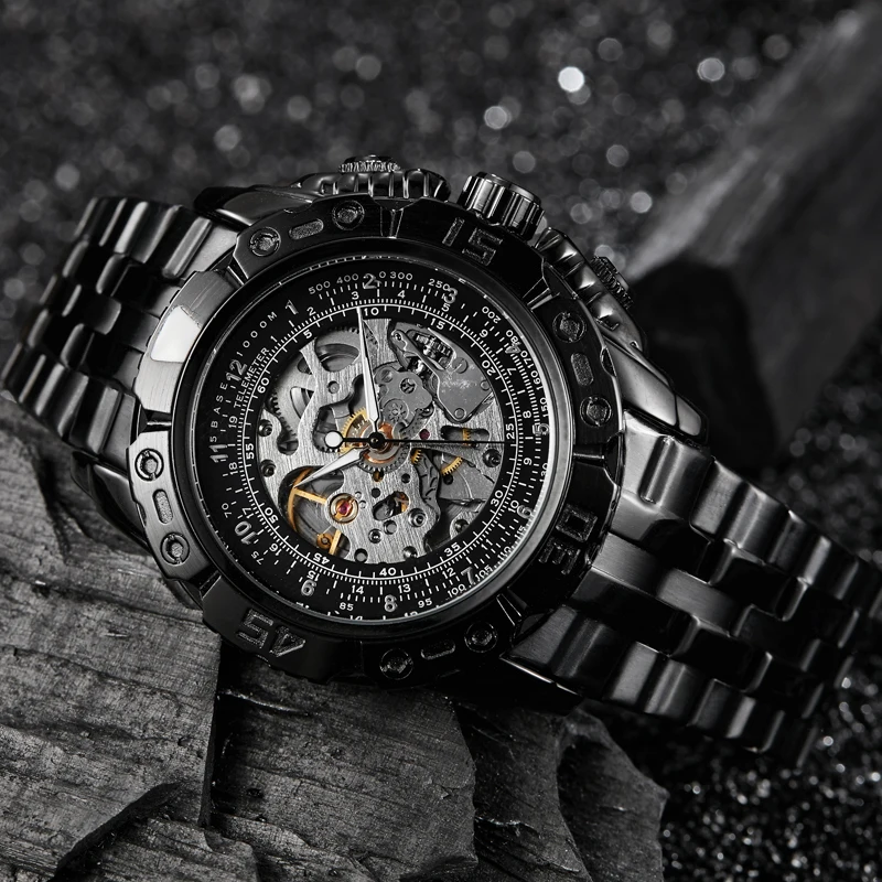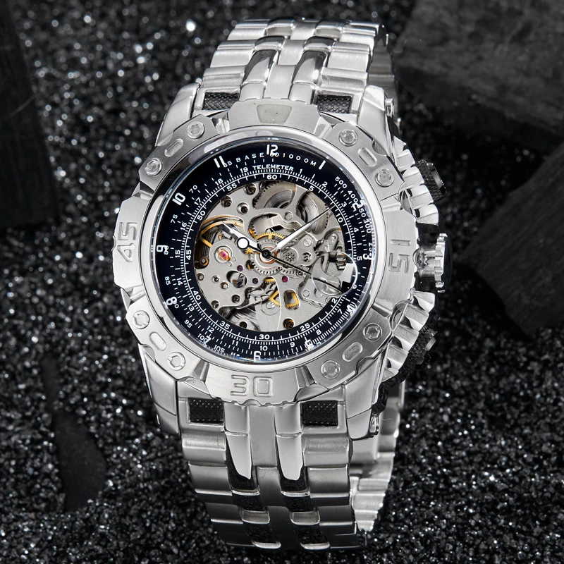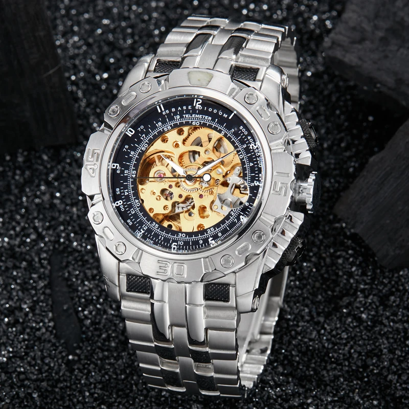 Роскошные автоматические механические часы серебристого и золотого цвета для мужчин, полностью Стальные наручные часы-скелетоны с большим циферблатом, мужские часы