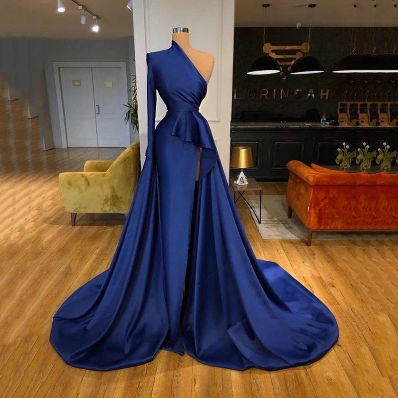 Женское атласное платье на одно плечо, Элегантное Длинное платье для выпускного вечера