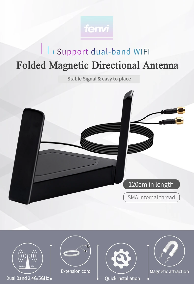 Сложенная внешняя антенна для Intel AX200 9260NGW, Двухдиапазонная Wi-Fi-карта 120 см, антенна с высоким коэффициентом усиления для настольного ПК, PCIe адаптер