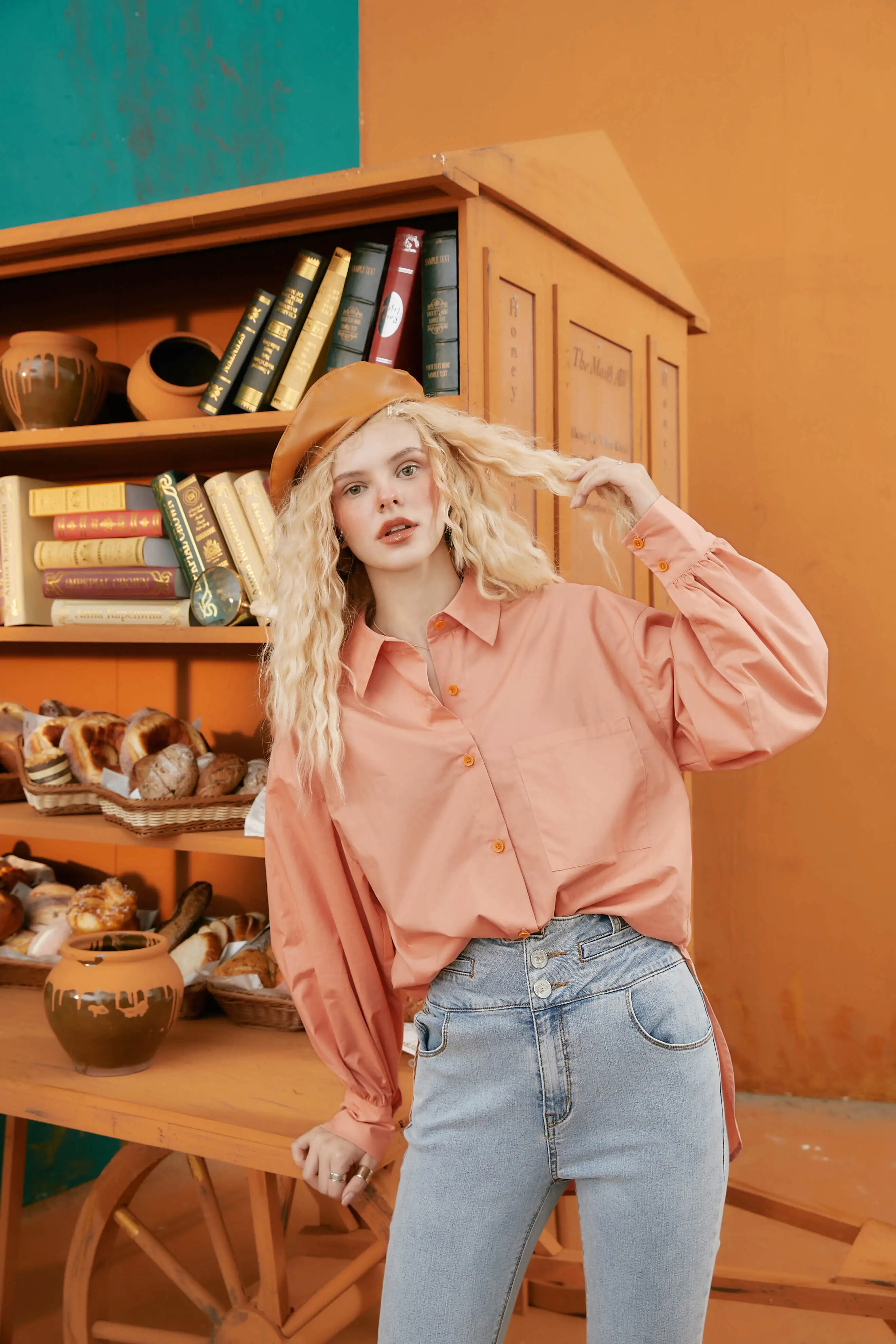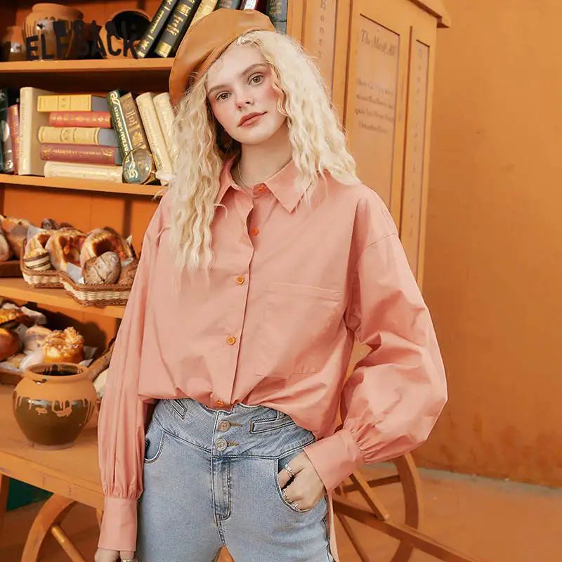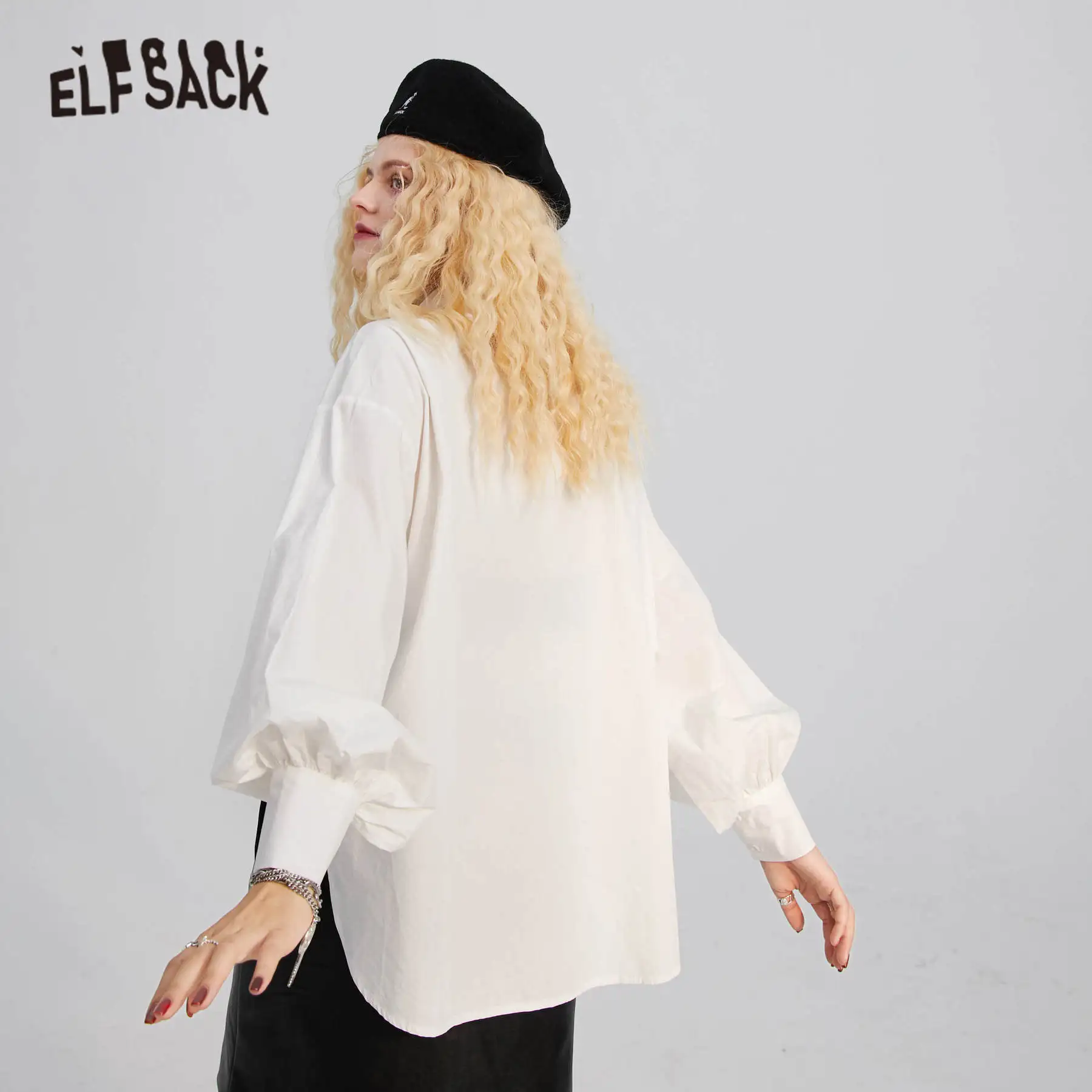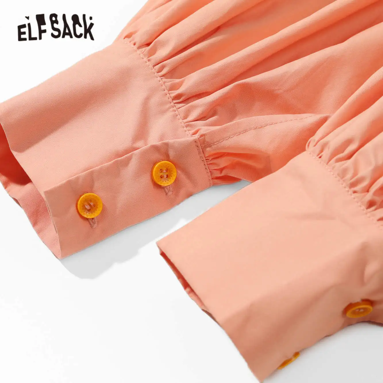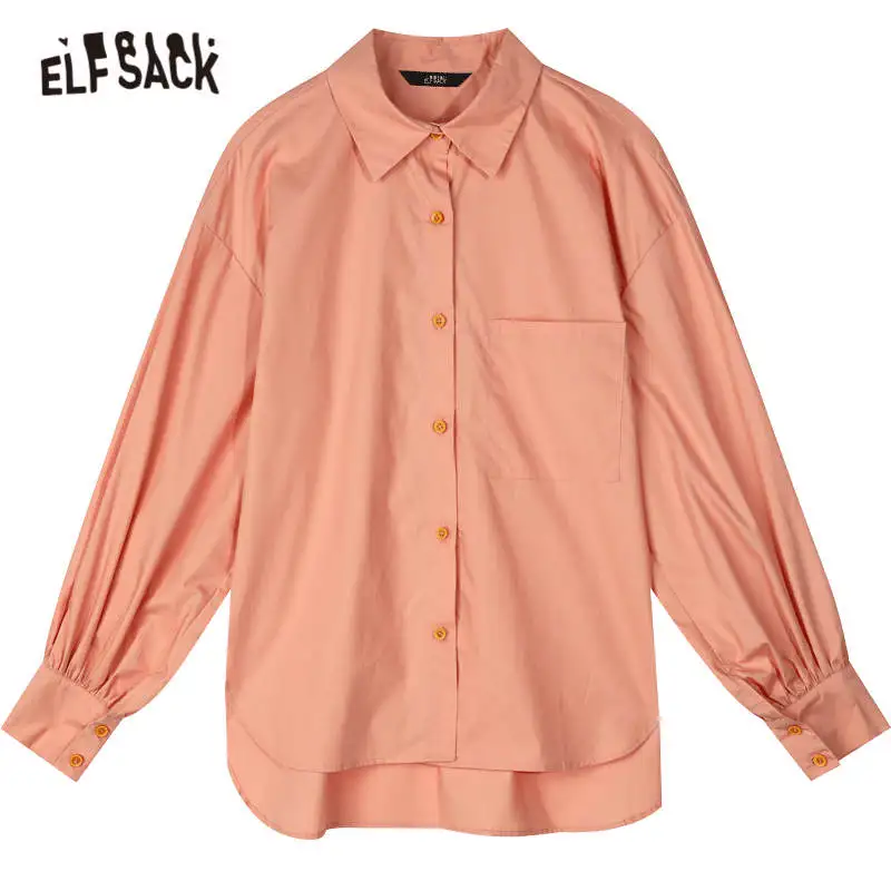Однотонные минималистичные однобортные рубашки ELFSACK в стиле оверсайз, повседневные женские рубашки, корейский Женский Повседневный Топ с длинным рукавом, осень 2020