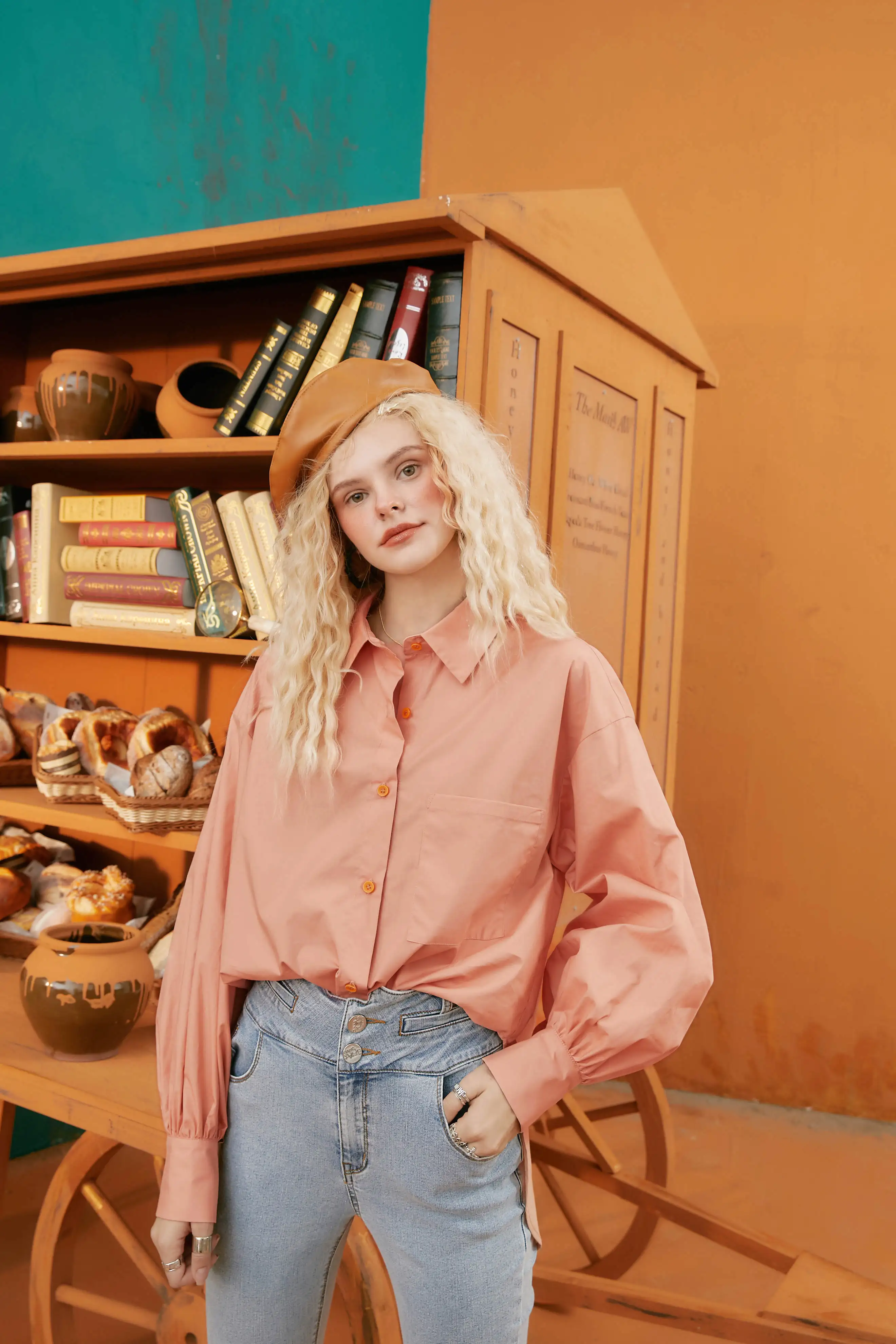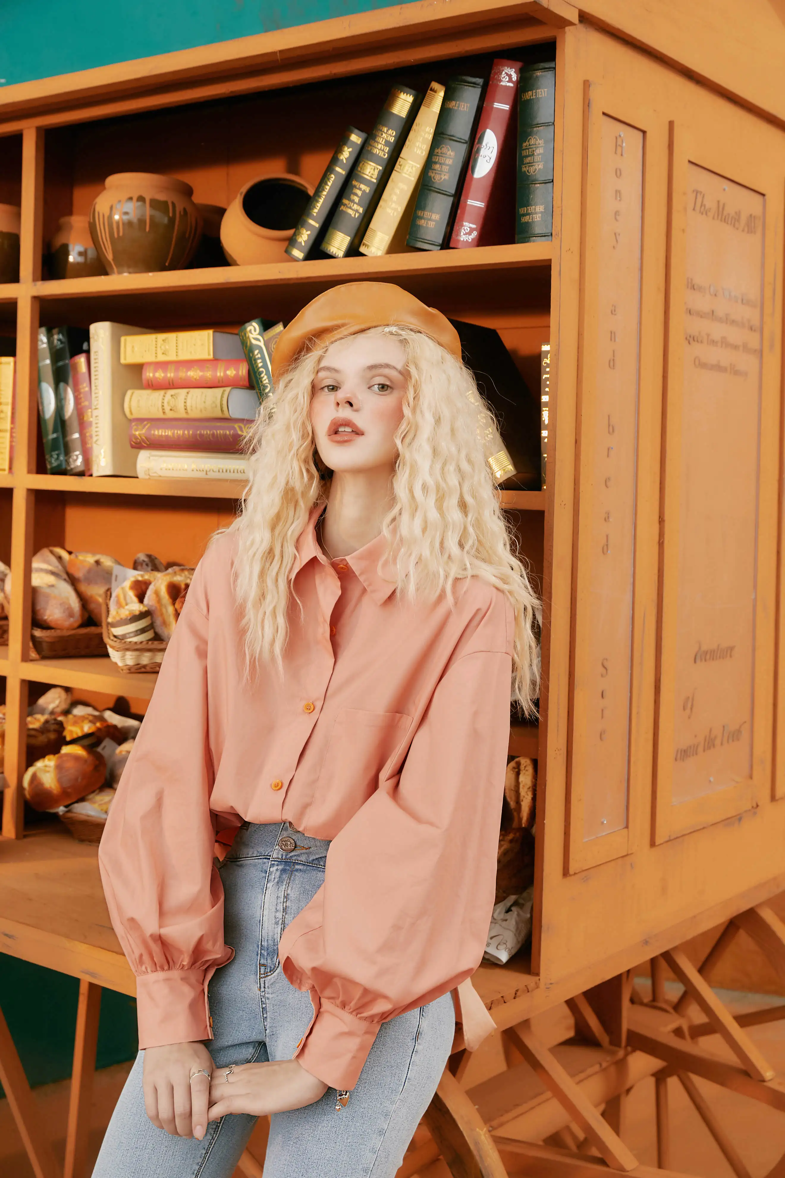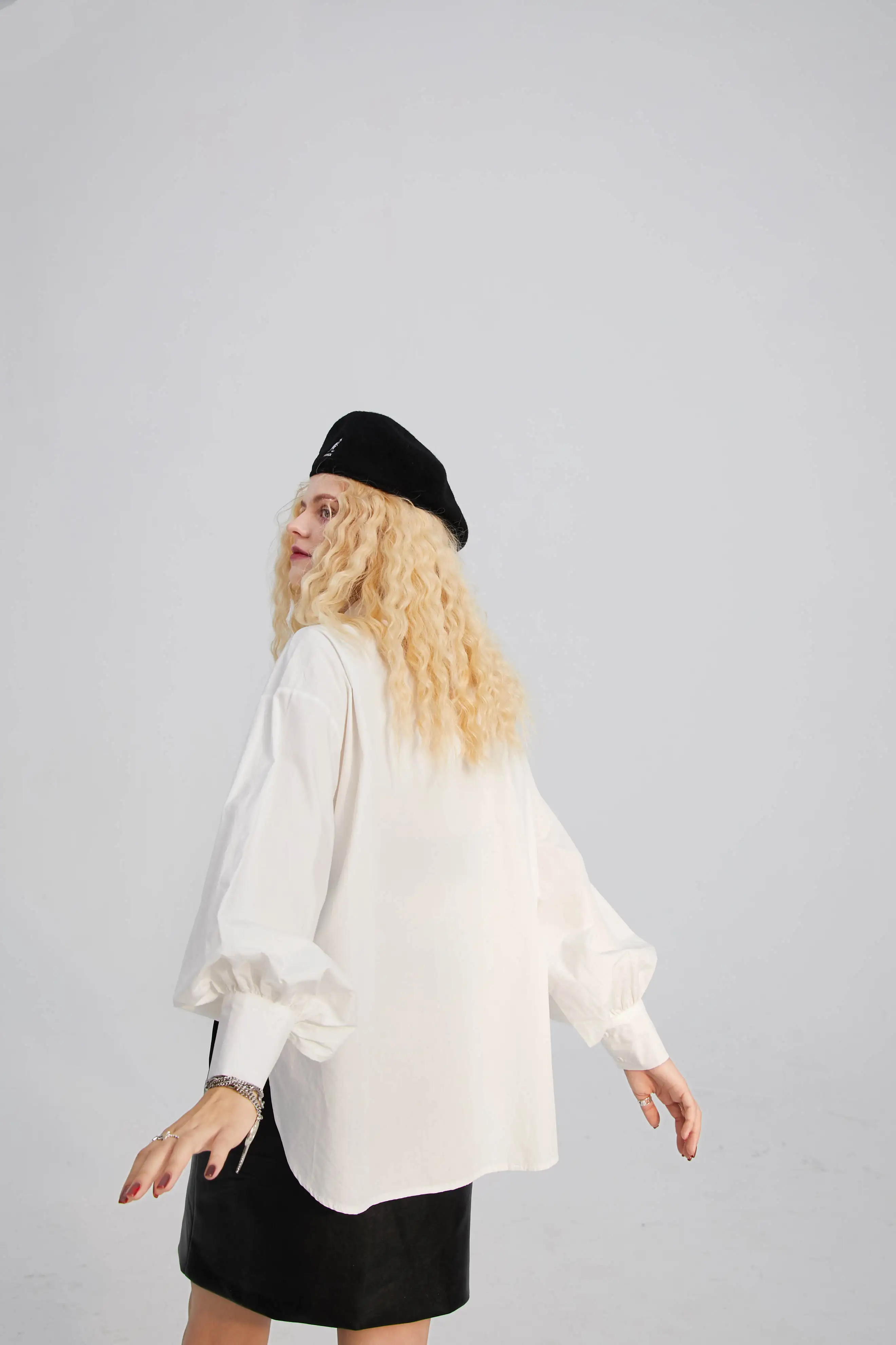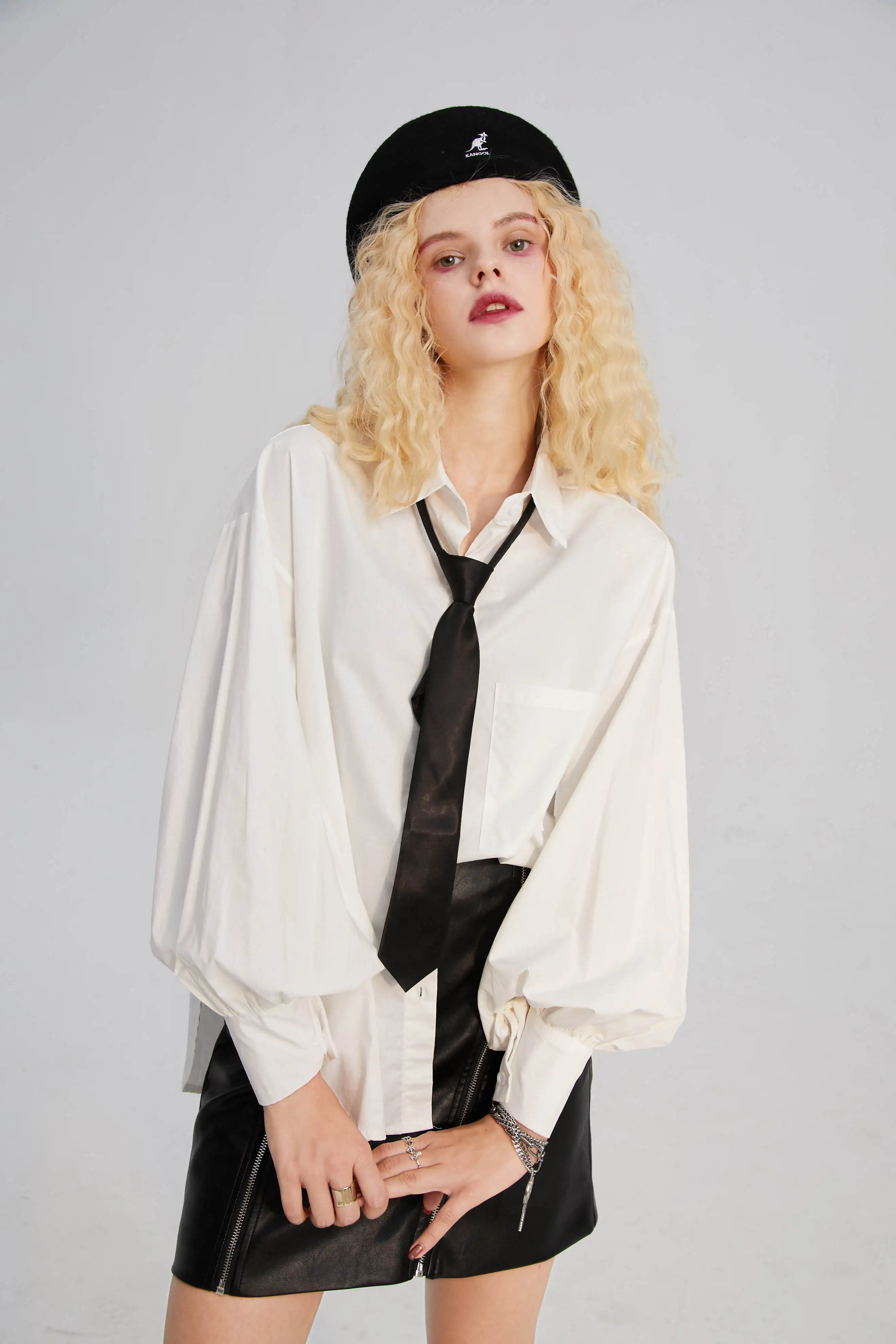 Однотонные минималистичные однобортные рубашки ELFSACK в стиле оверсайз, повседневные женские рубашки, корейский Женский Повседневный Топ с длинным рукавом, осень 2020
